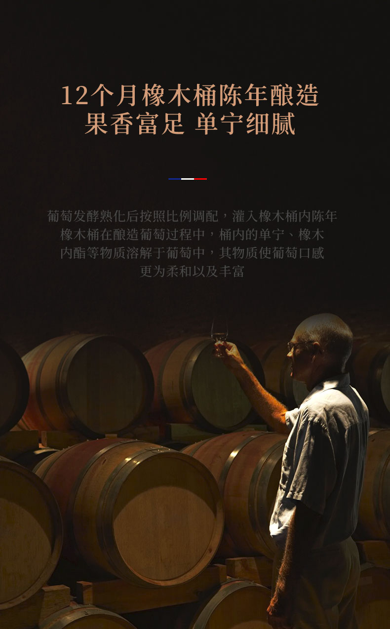 【香气】酒香浓郁,富含樱桃,莓子,和黑色水果的香气。