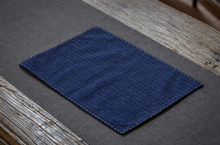 茶香记 手工缝制条纹老土布 一人席 素雅拙朴 复古蓝色 双面茶席