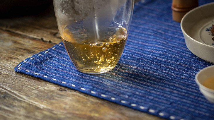 茶席双面可用,一面是条纹织布,朴实又灵动;