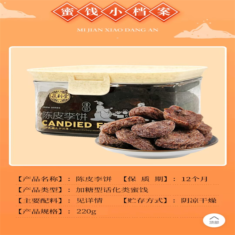 220g泉利堂陈皮李饼 果香浓郁核小肉厚颗颗饱满