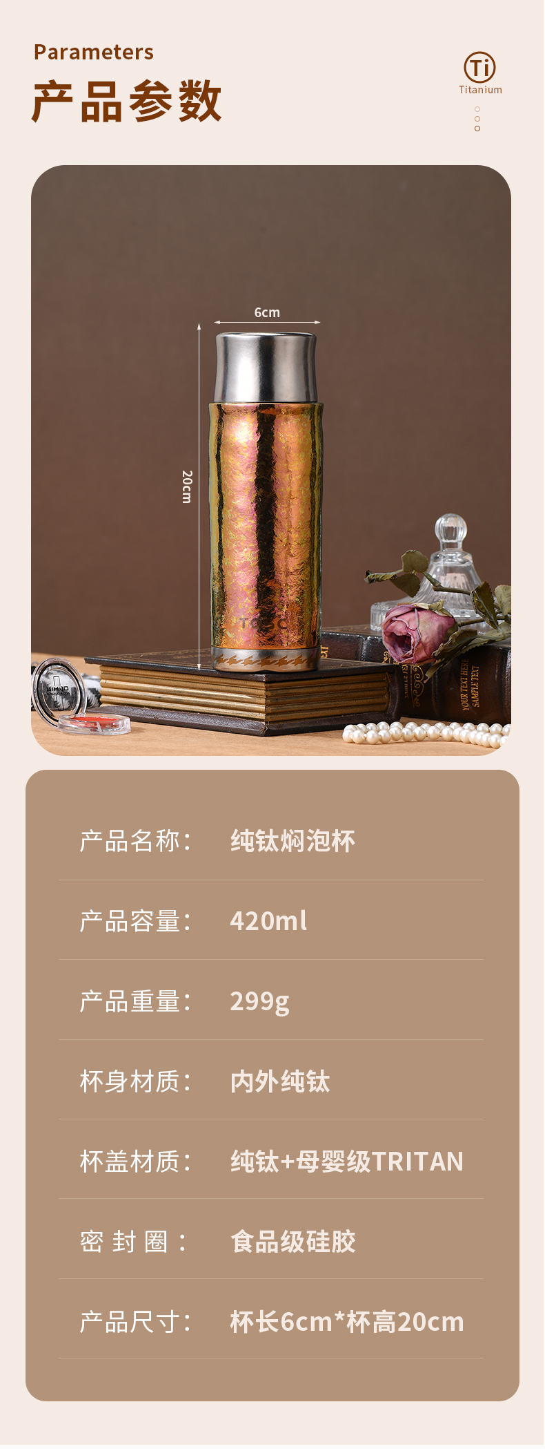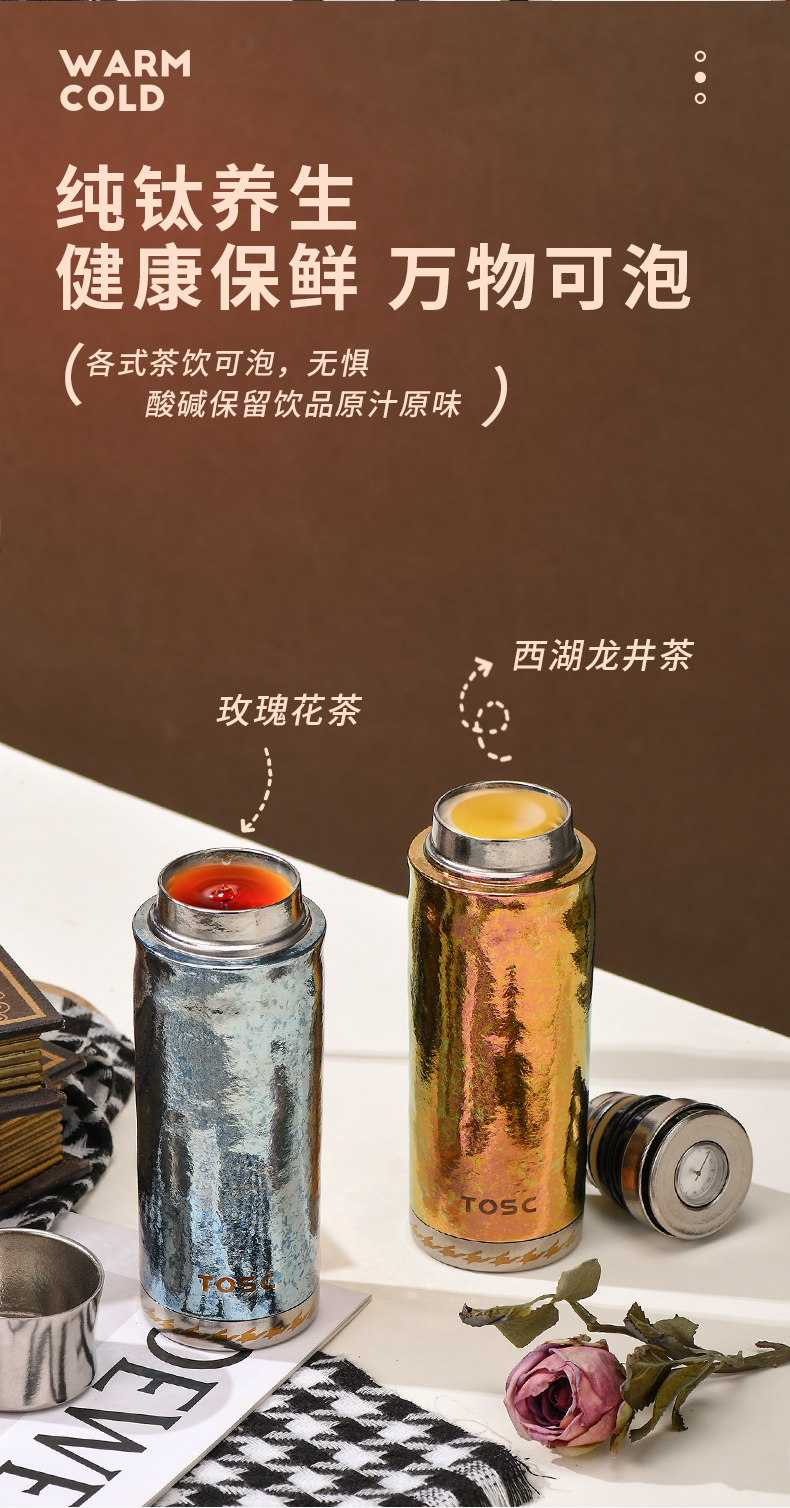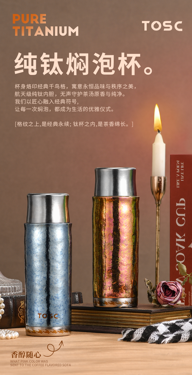 【送杯套】英国TOSC特可纯钛99.9%千鸟格焖泡杯茶水分离磁吸杯盖420m