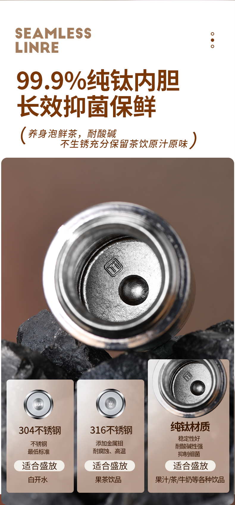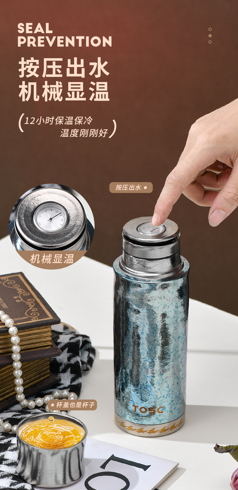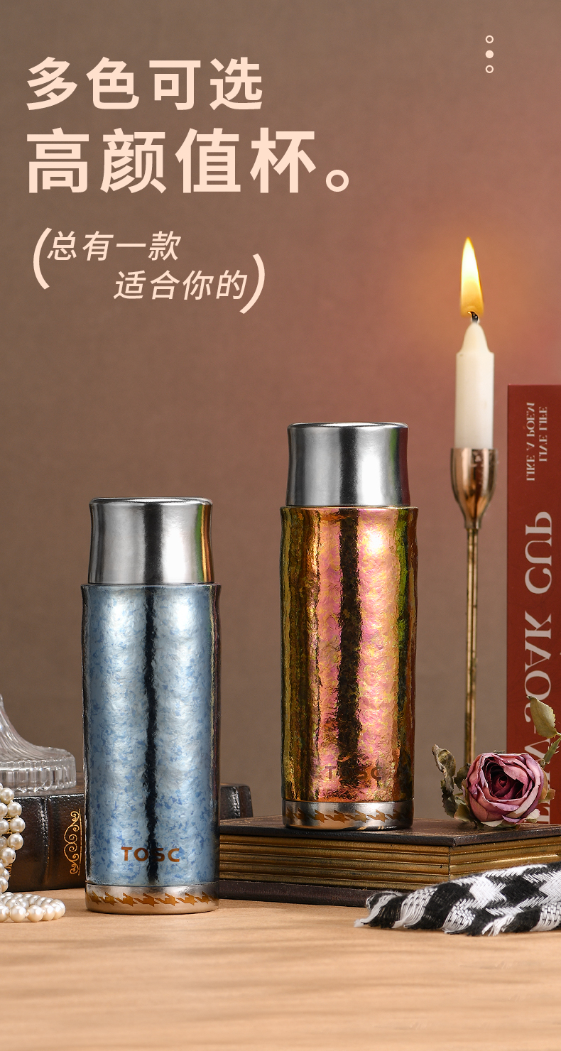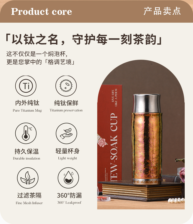 【送杯套】英国TOSC特可纯钛99.9%千鸟格焖泡杯茶水分离磁吸杯盖420m