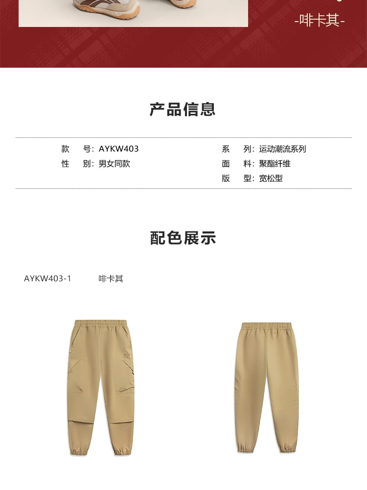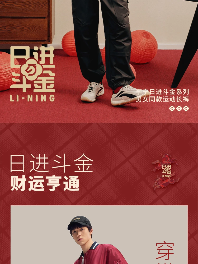 李宁日进斗金系列男子束脚宽松运动长裤AYKW403