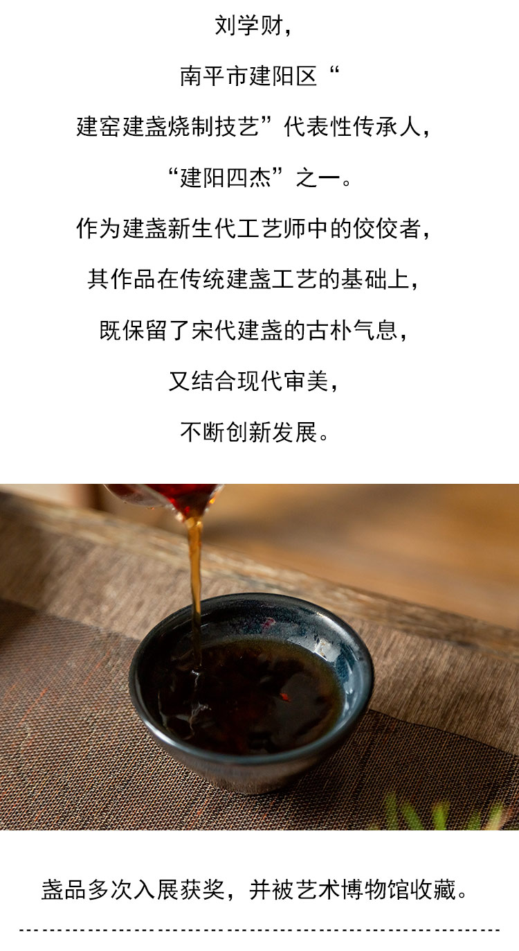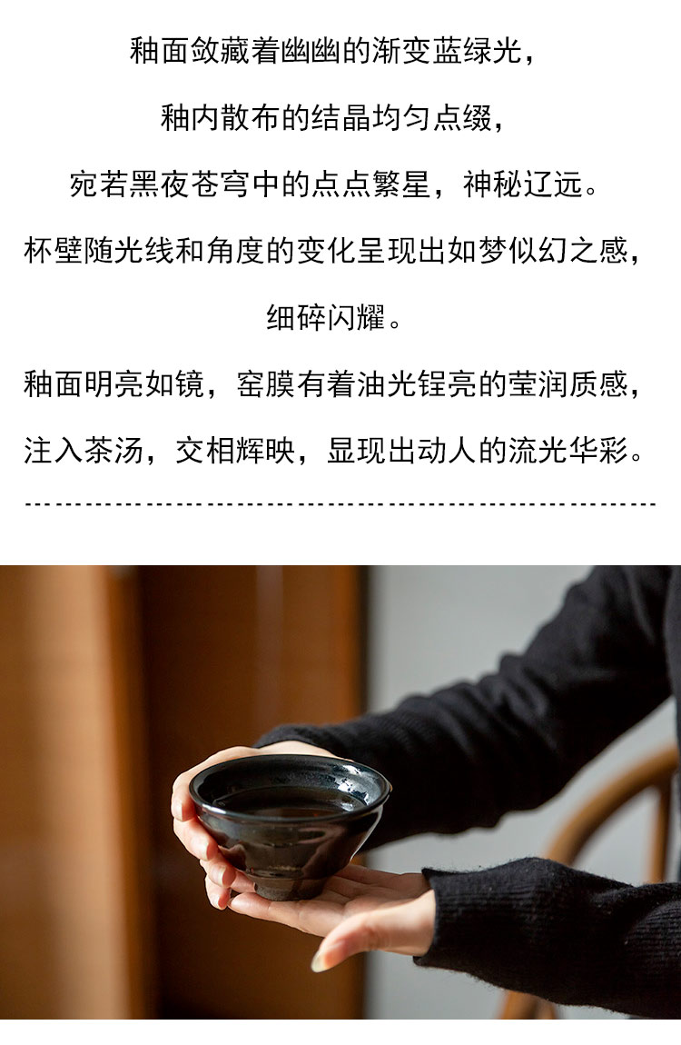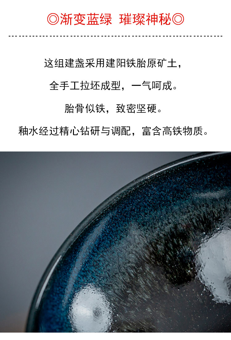 茶香记 刘学财柴烧建盏100ml渐变蓝绿毫敛口盏束口盏灯盏主人杯