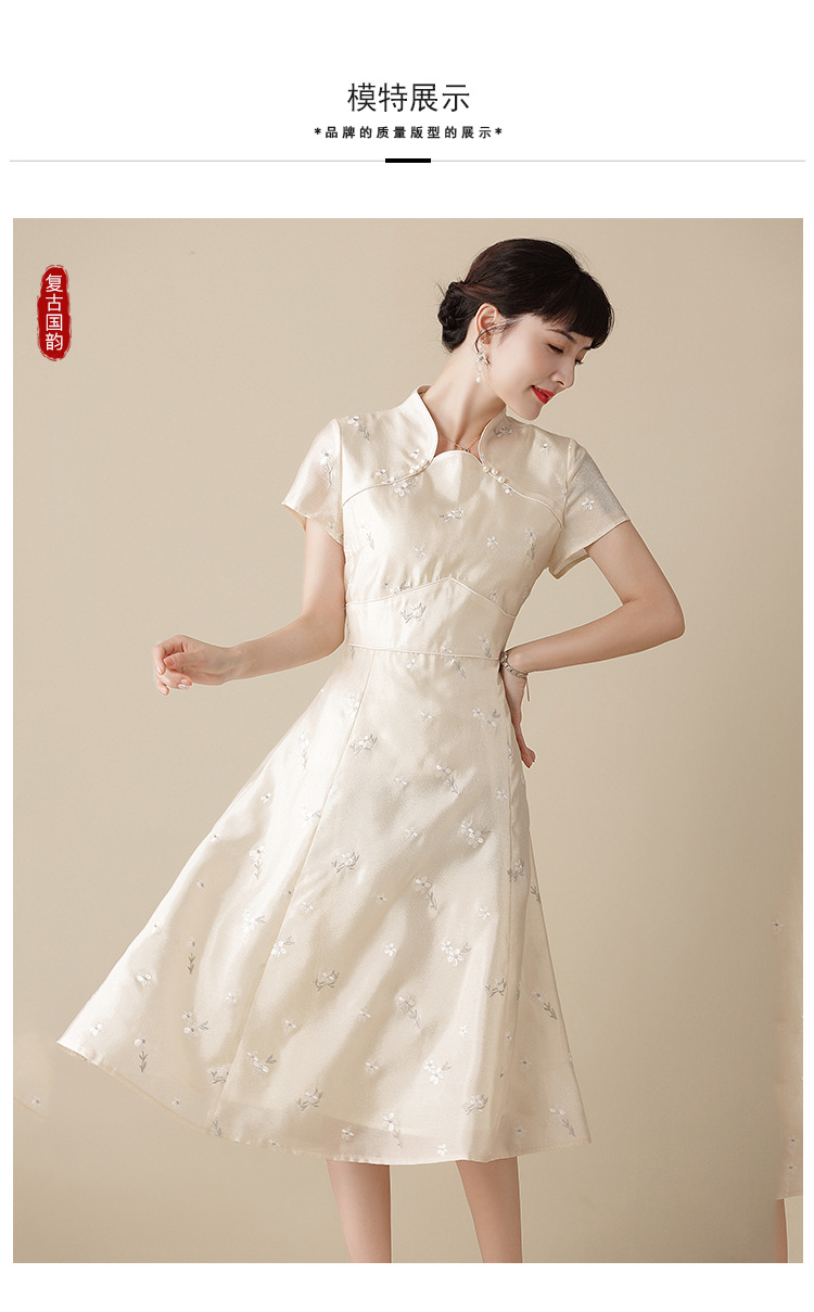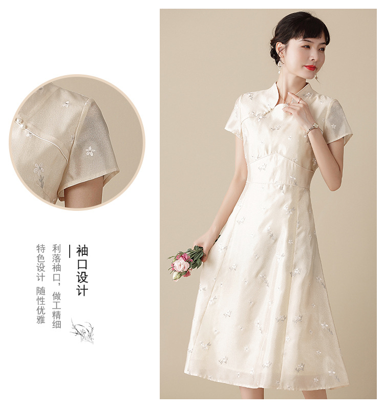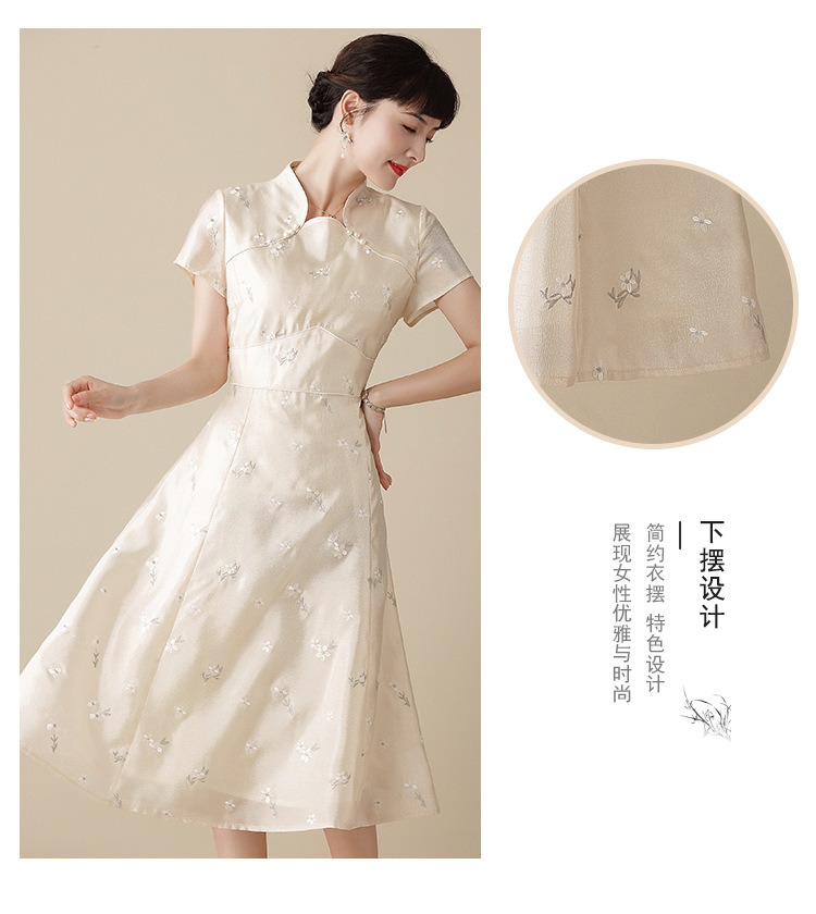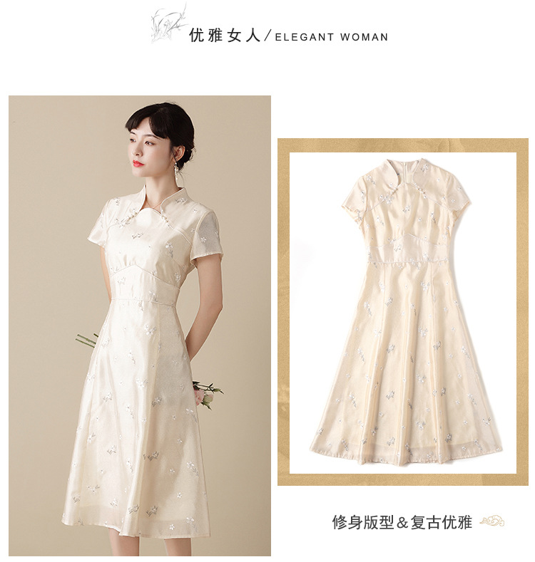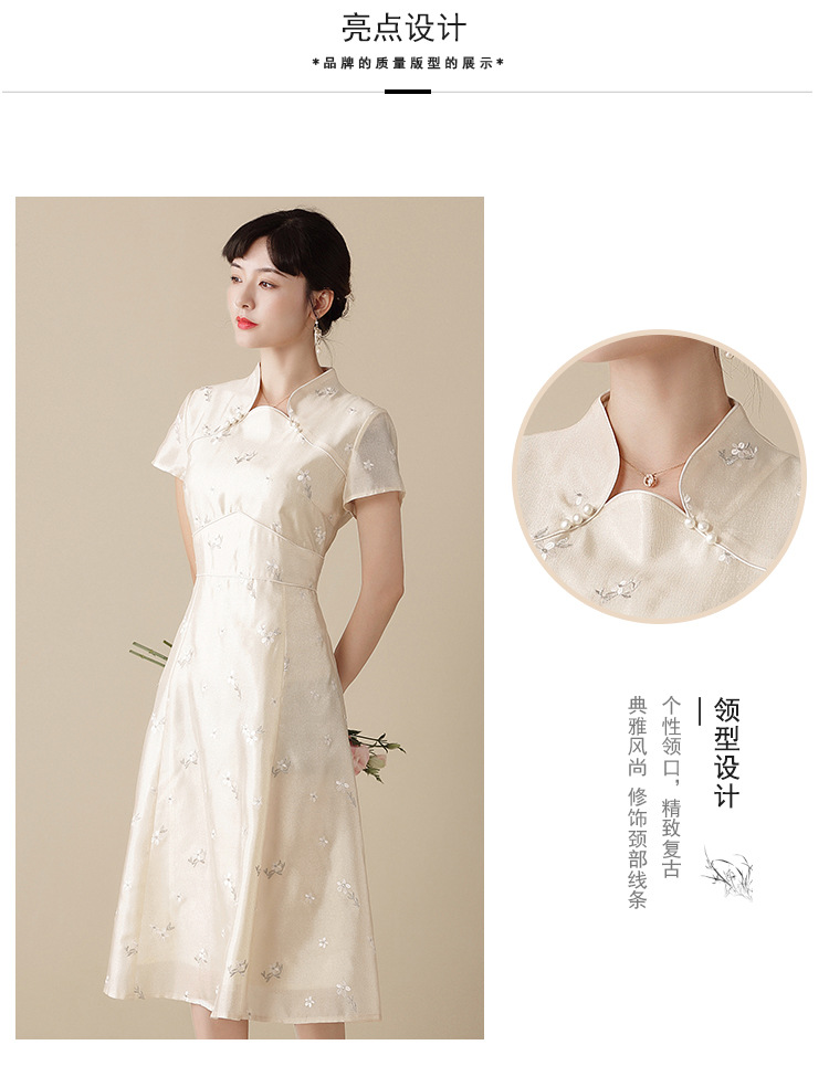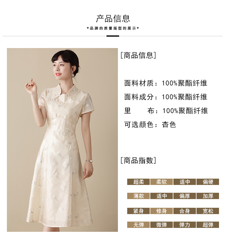 上海旗袍厂AYK-QF-201125杏底小提花立领旗袍早秋2021国风时尚改良短袖旗袍大摆a字连衣裙