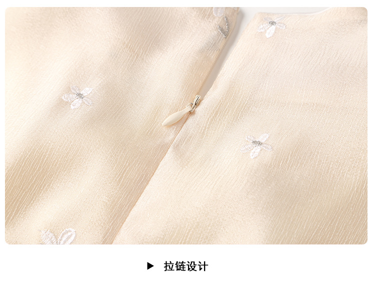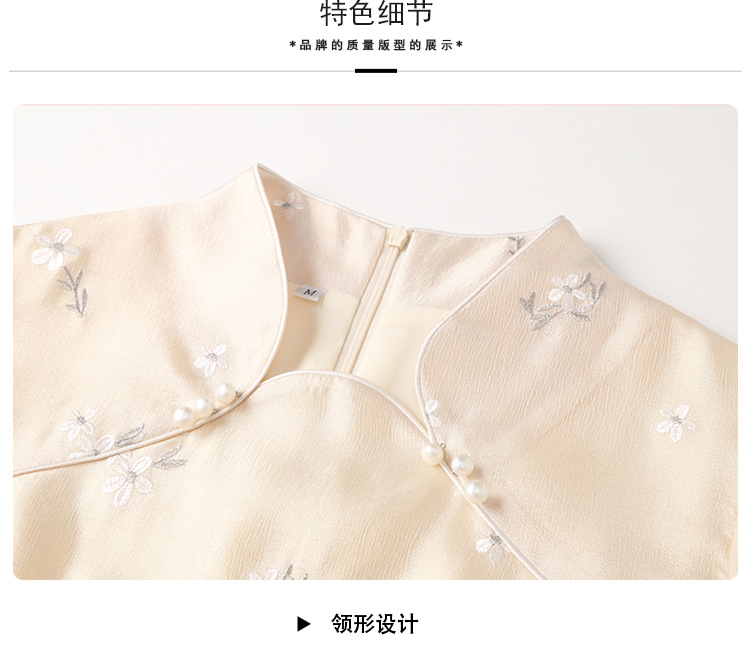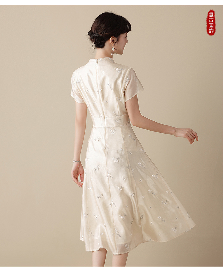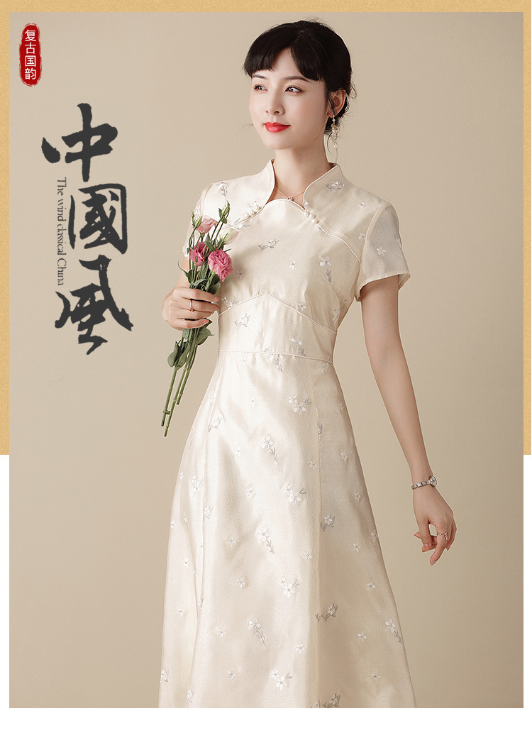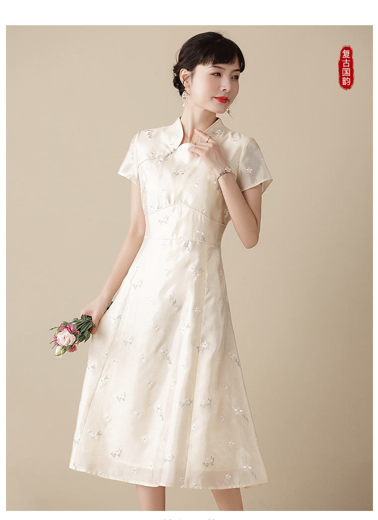 上海旗袍厂AYK-QF-201125杏底小提花立领旗袍早秋2021国风时尚改良短袖旗袍大摆a字连衣裙