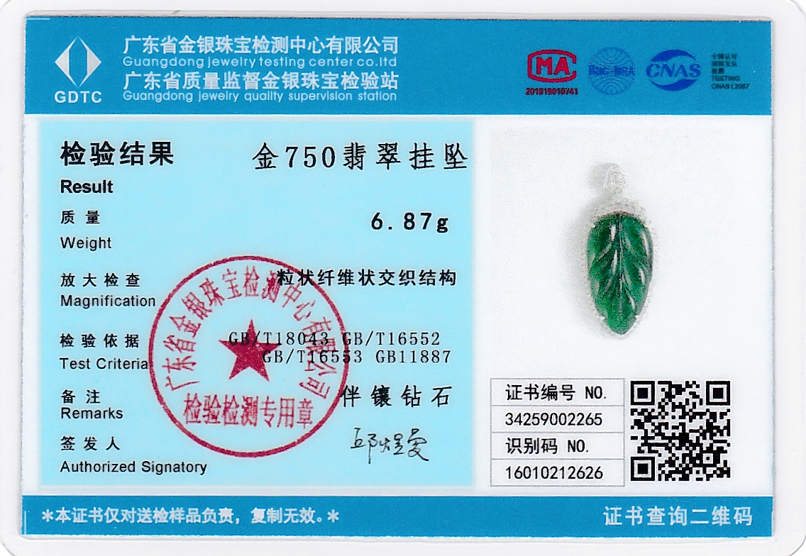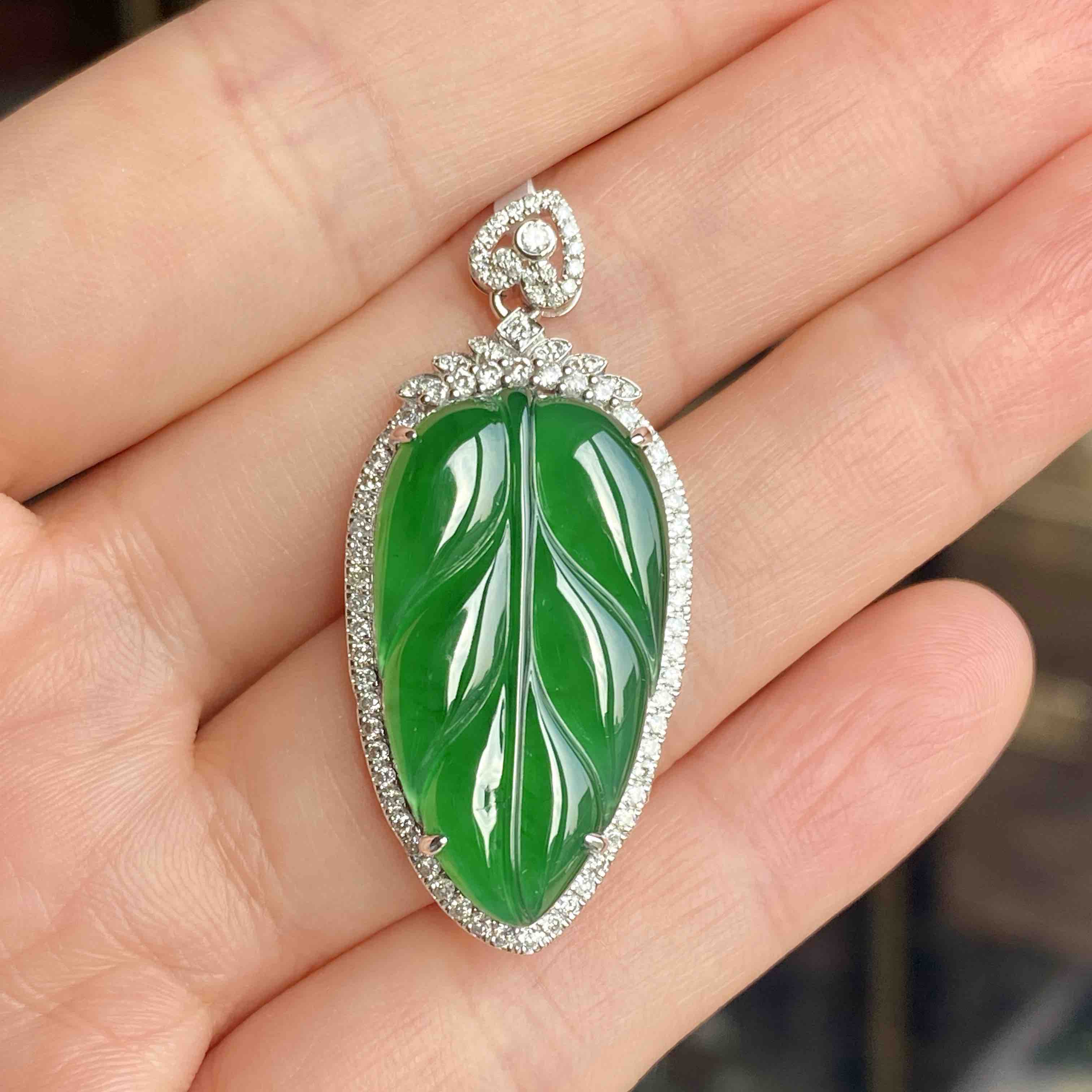 玉石尺寸: 菩提叶15*27mm 配镶:钻石