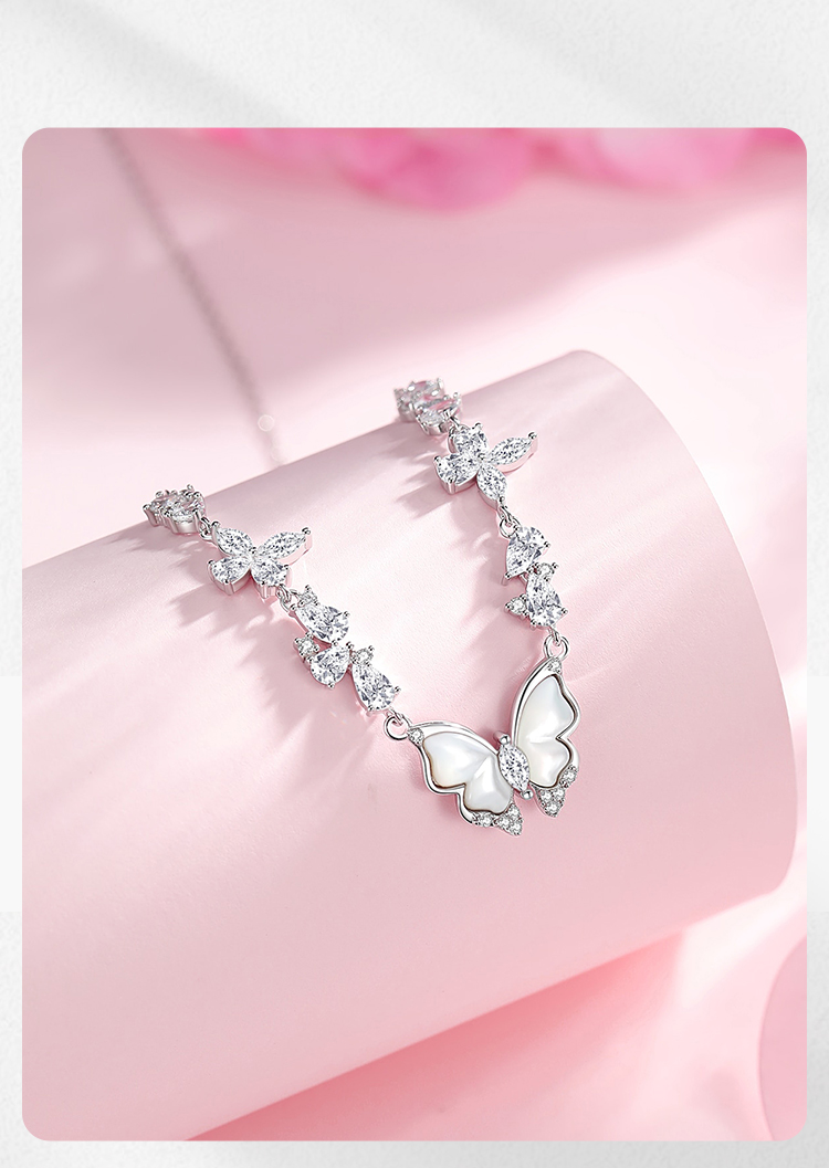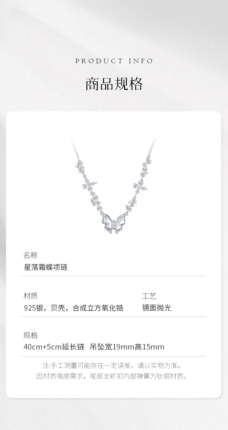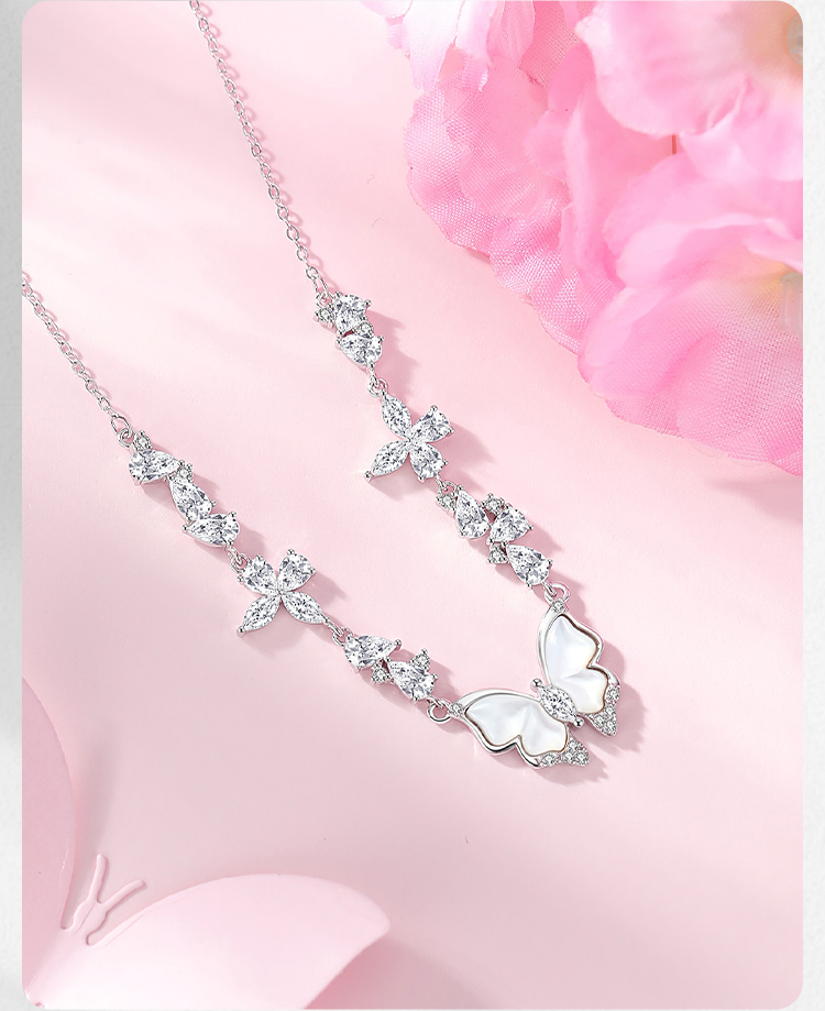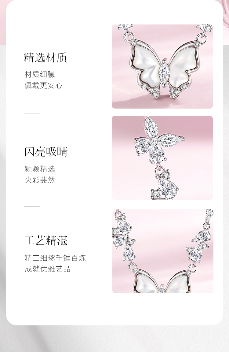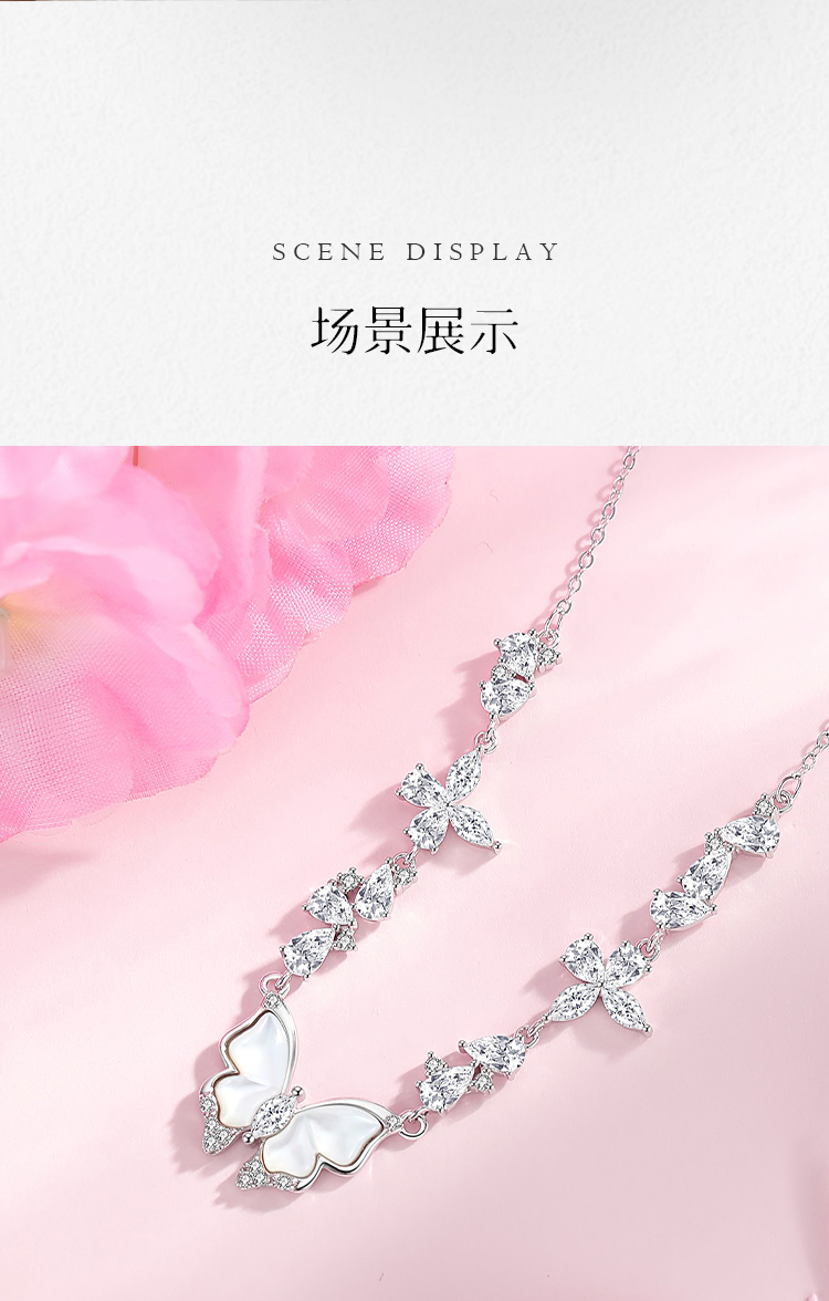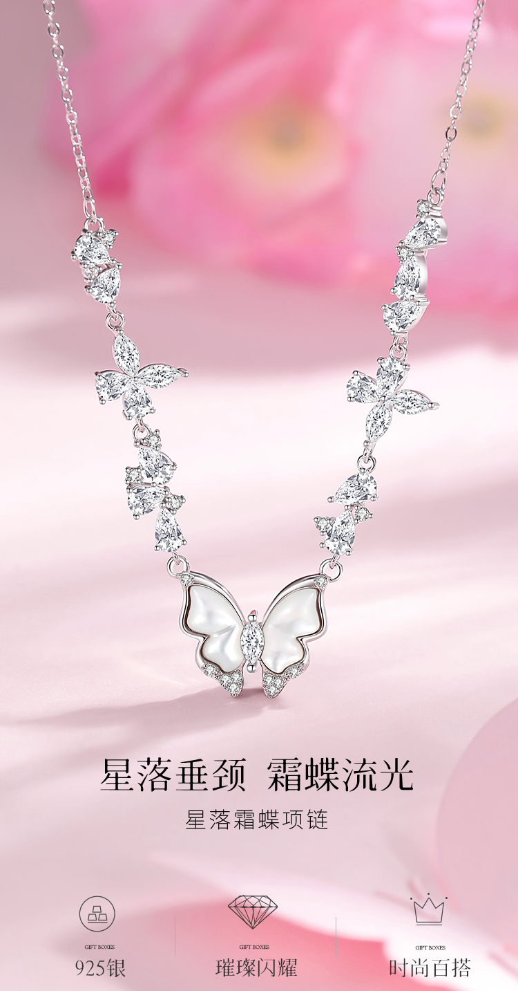 Winy S925 银星落霜蝶项链女 贝壳蝴蝶吊坠 合成立方氧化锆轻奢锁骨链小众设计
