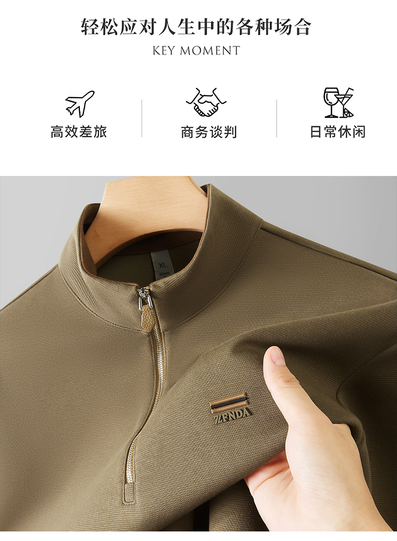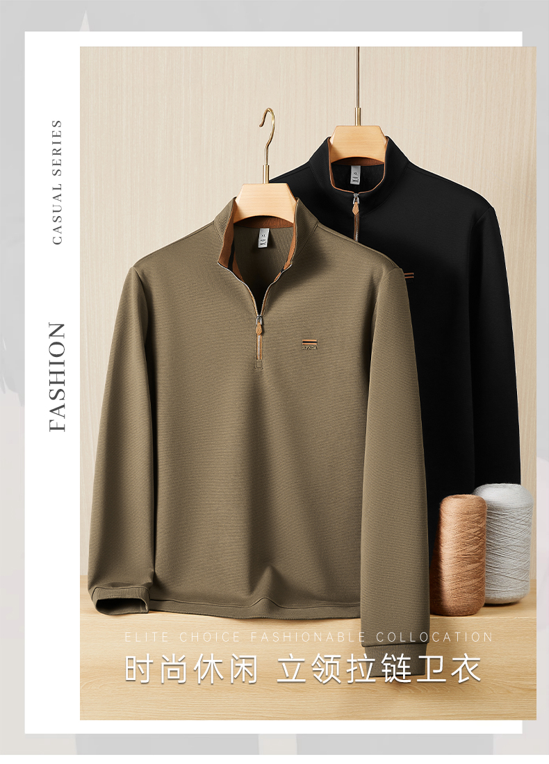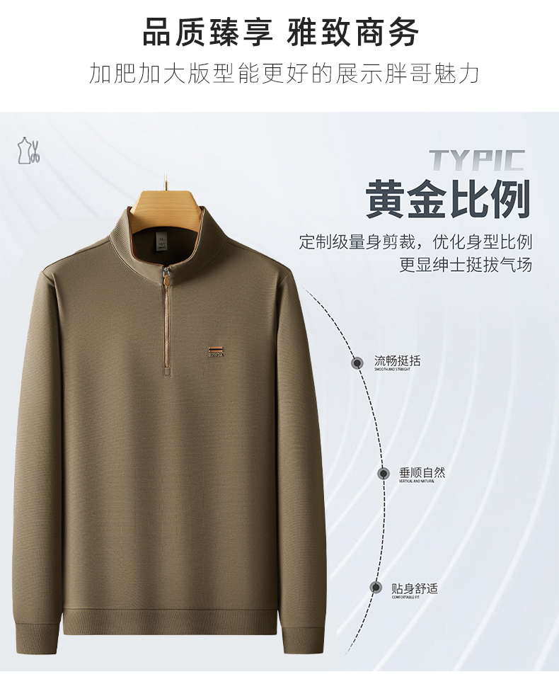【DDP】大依优型大码男装半拉链长袖卫衣棉质时尚休闲商务立领T恤