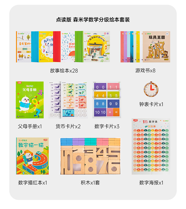 小彼恩出品 森米学数学分级绘本+数学积木玩具套装 全套36册书+配套积木玩教具 点读版EF