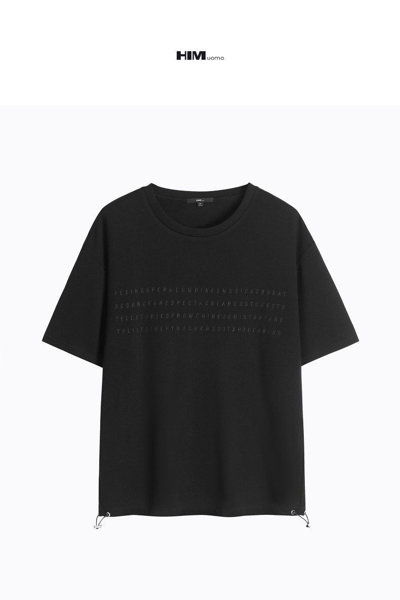 HIM漢崇 舒适透气休闲短袖T恤男士简约植绒印花圆领上衣 2026夏季