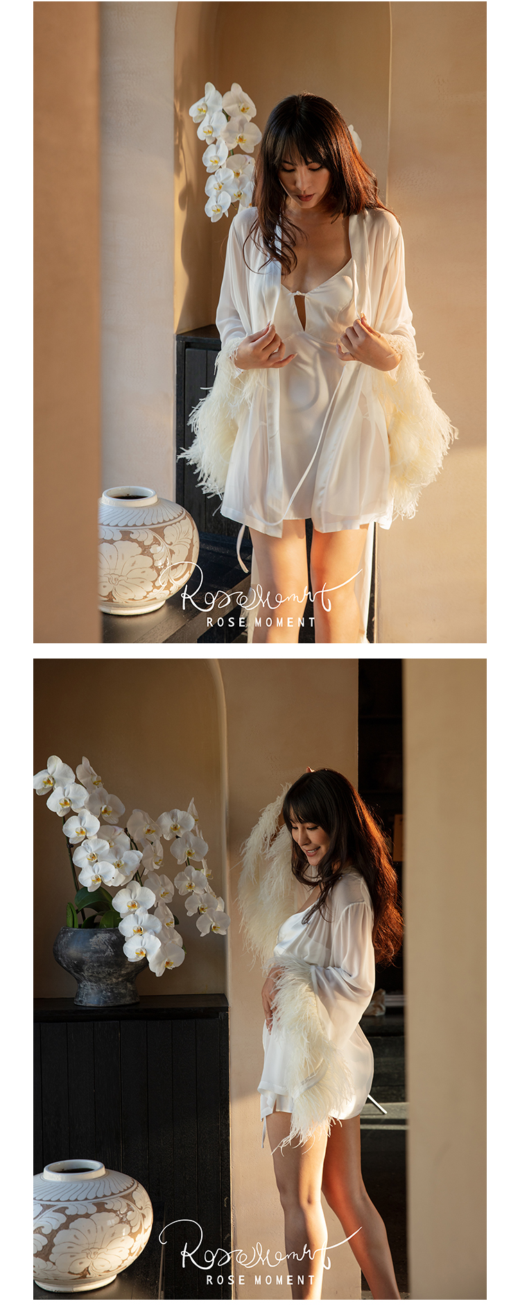 微透朦胧真丝乔其羽毛袖中袍 P231183