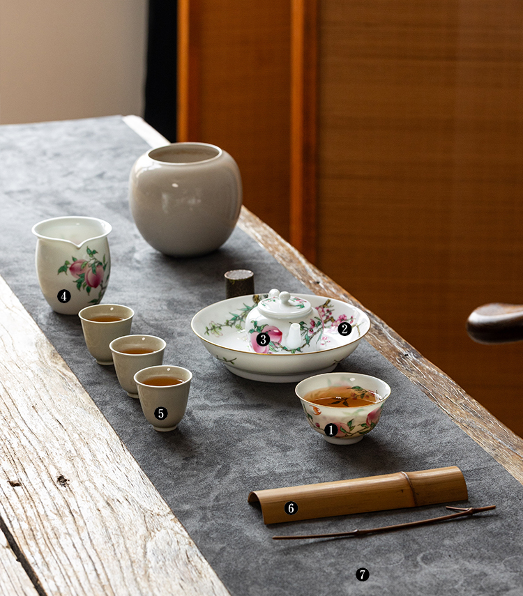 茶香记徐窑五桃过枝杯(正德款)80ml景德镇陶瓷茶杯粉彩主人杯