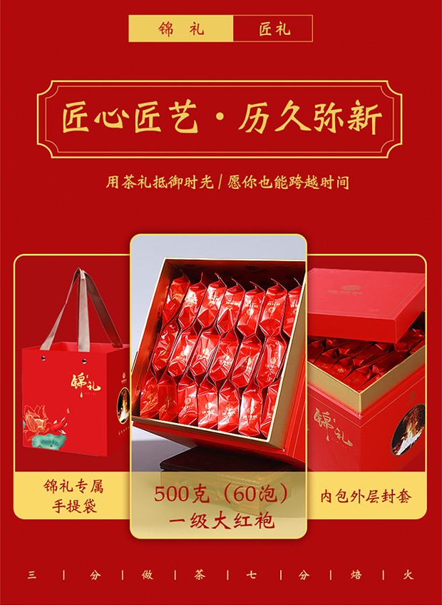 【叼健康】徐聘号大红袍乌龙茶礼盒(口粮茶-锦礼清香型)/1盒(60泡,共约500g)生产日期:25年9月