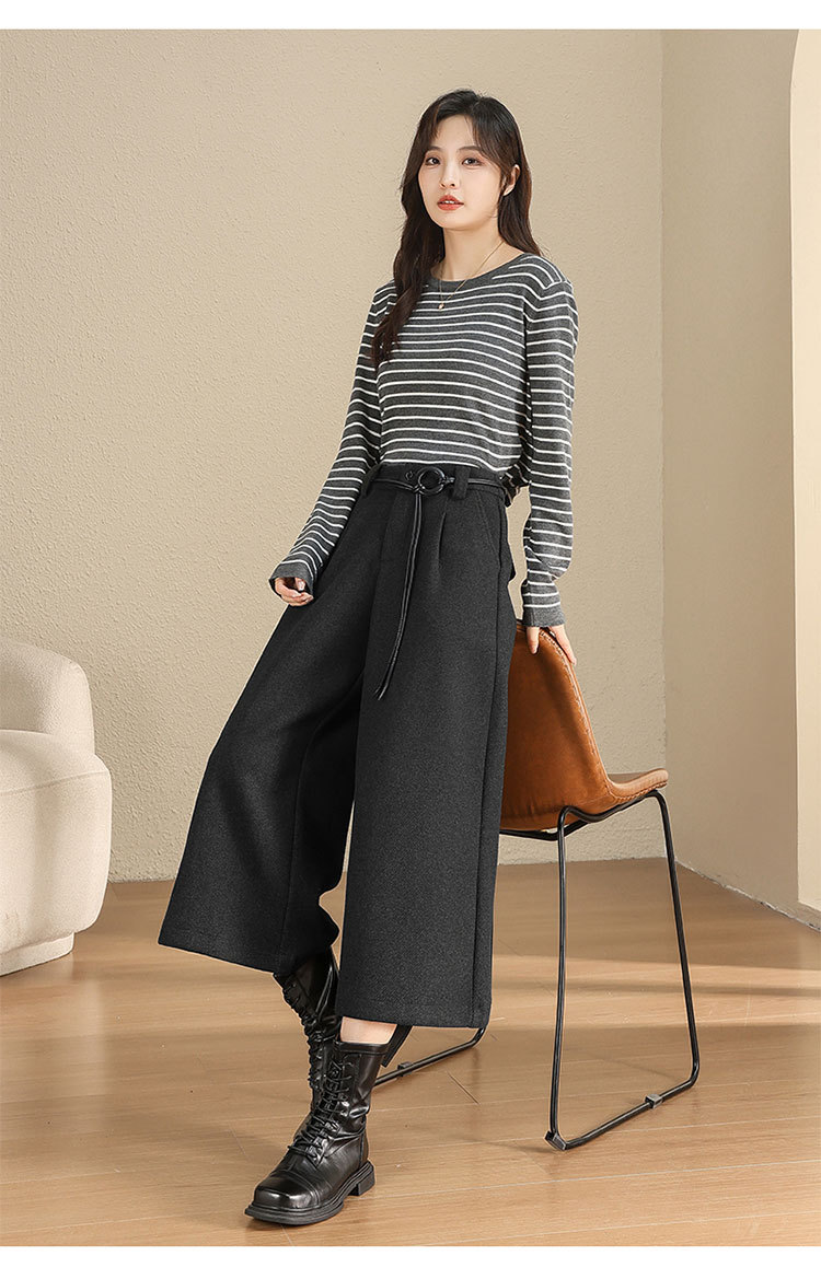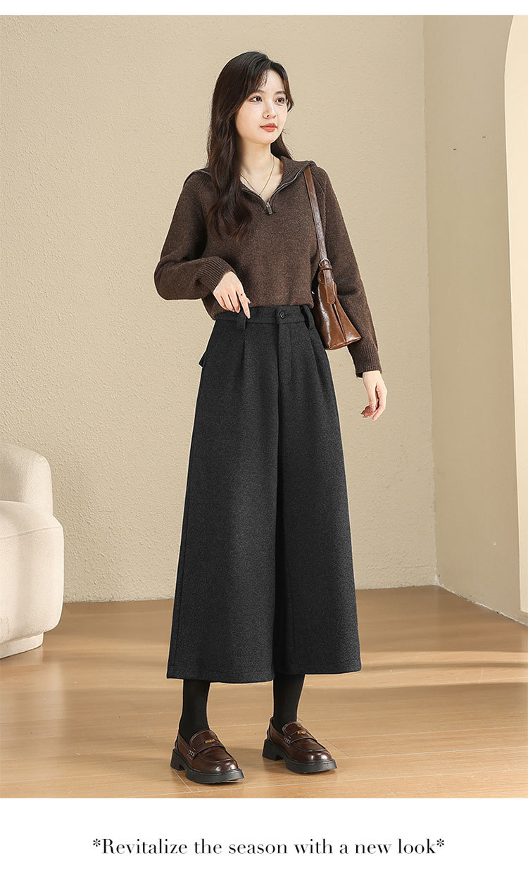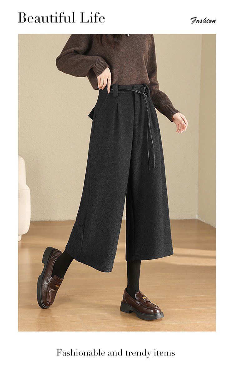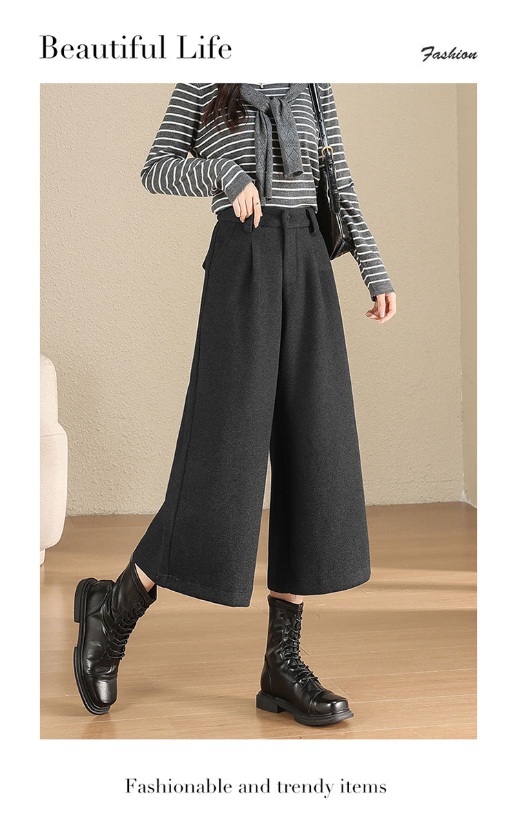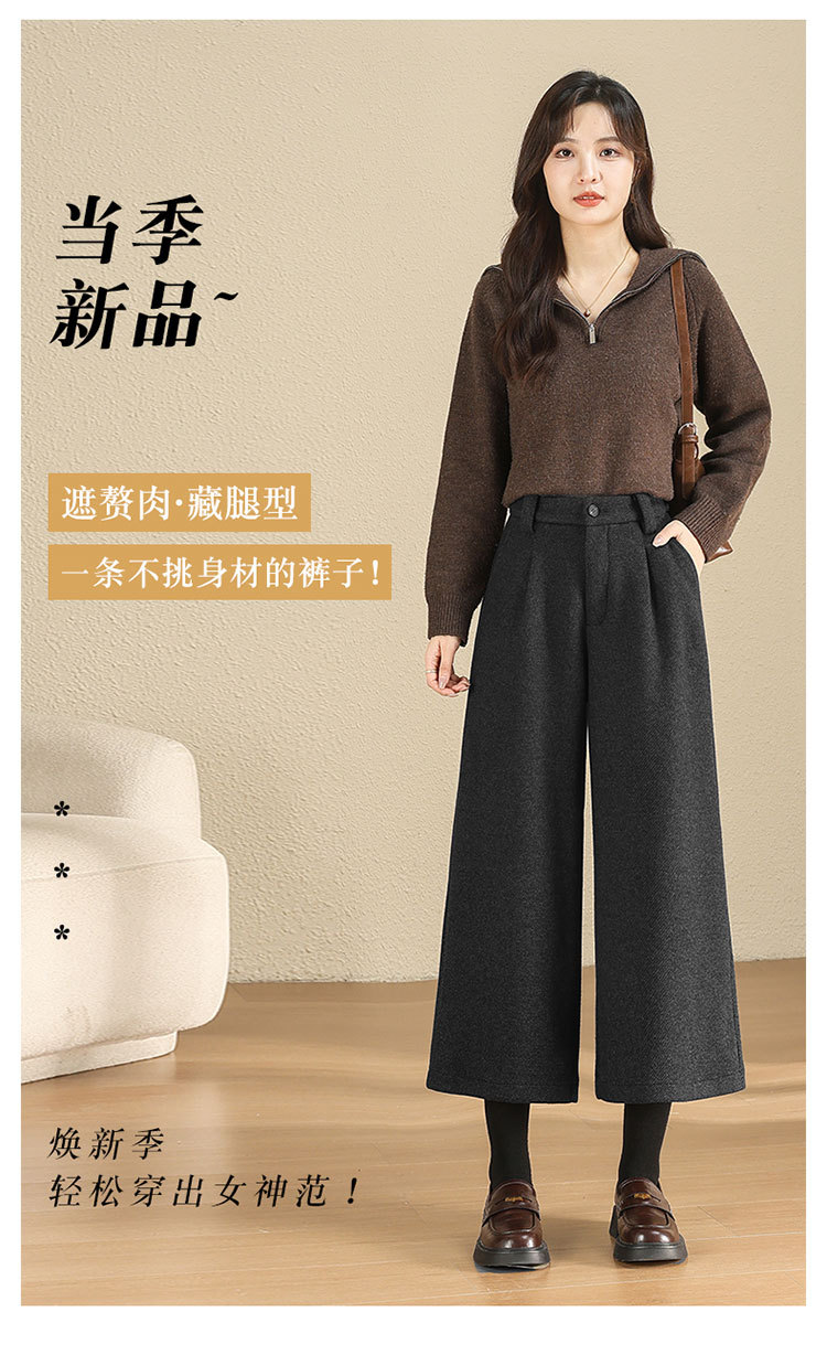 MYX毛呢阔腿裤垂坠感高腰A字显瘦八分裤2025年冬款洋气通勤时尚靴裤