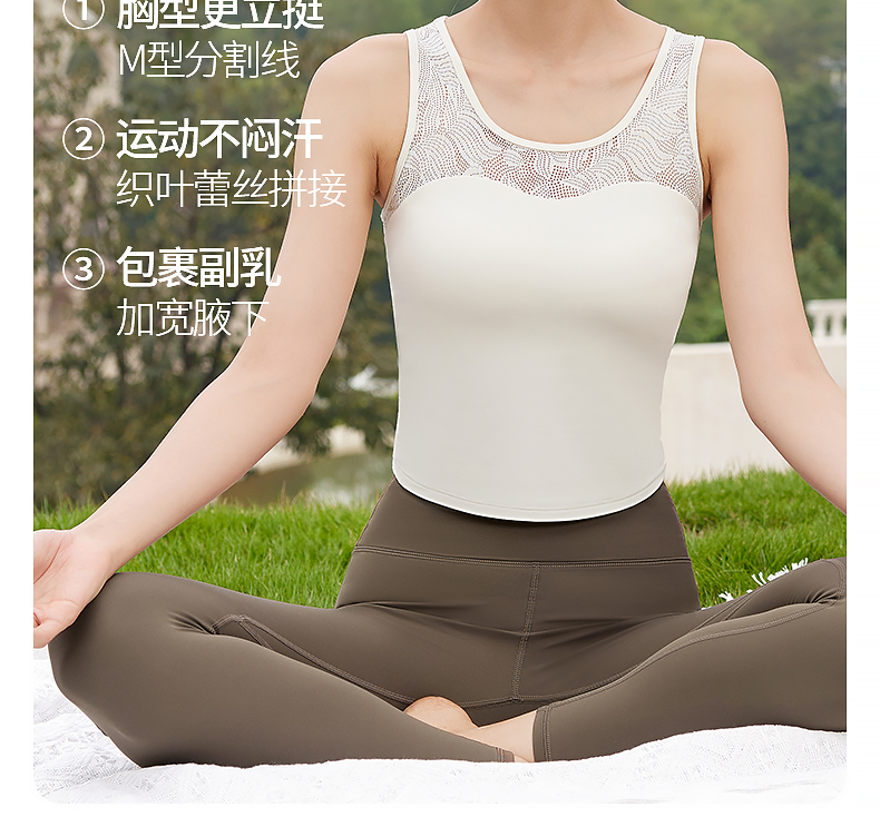 梵美人 F5253 瑜伽背心 织叶蕾丝 可拆卸胸垫