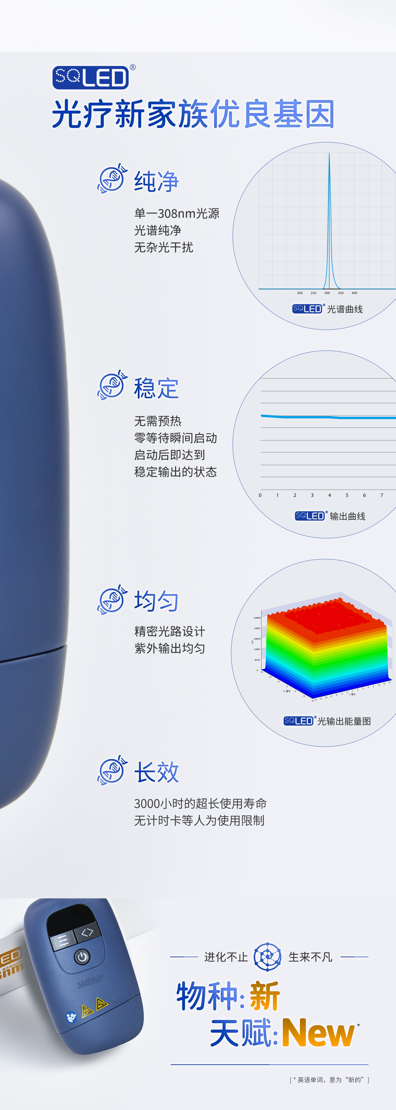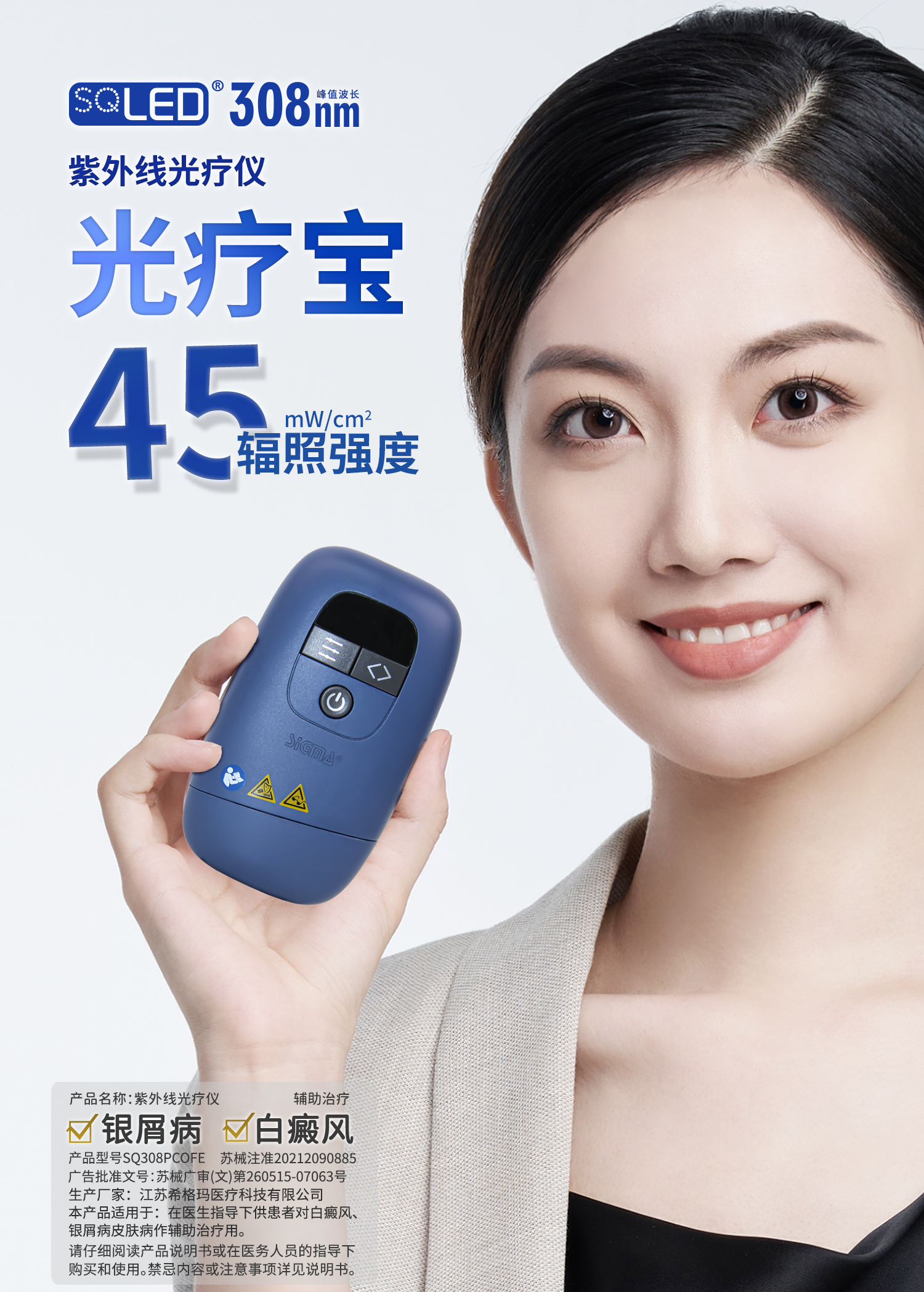 【插电款】希格玛家用45mW/cm²小面积308白癜风光疗光疗宝高强度银屑病牛皮藓紫外线SQ308PCOFE【适应症:白癜风、银屑病】