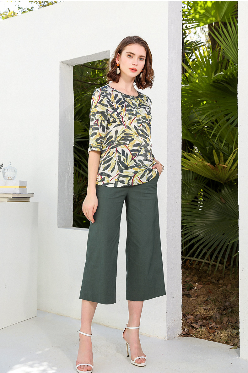 乔万尼裤子女春季时尚宽松显瘦休闲裤九分裤直筒阔腿裤EN2F568