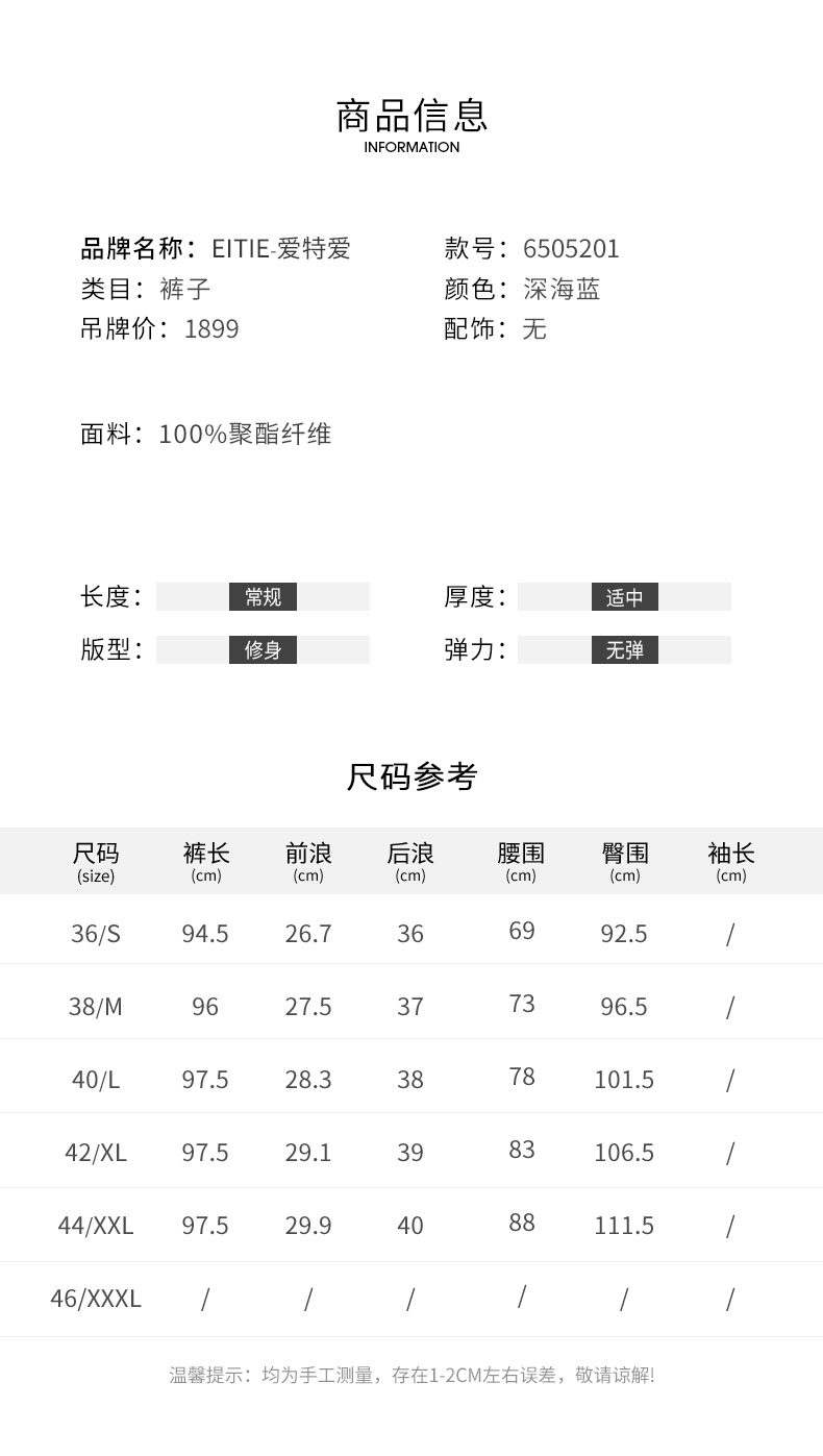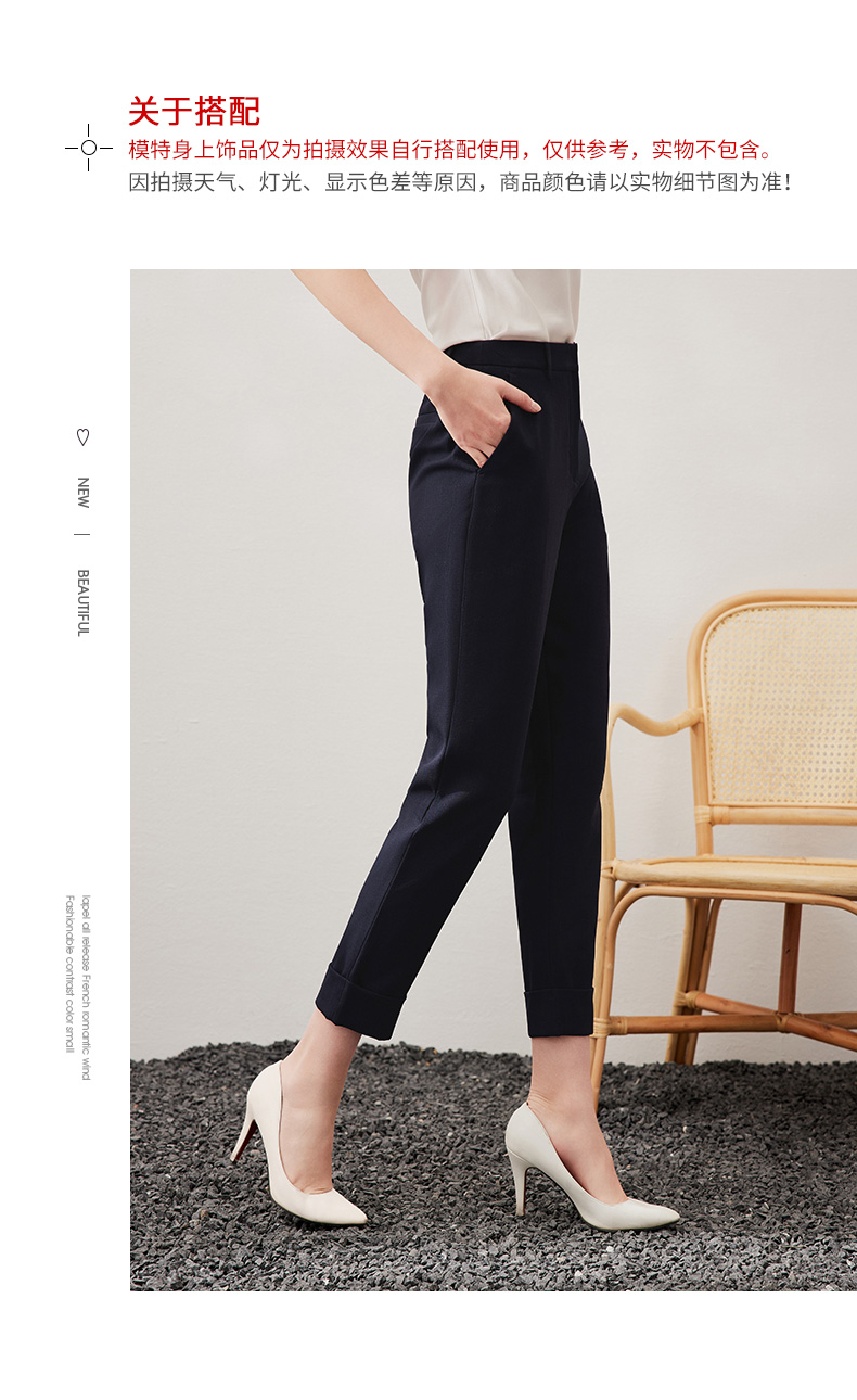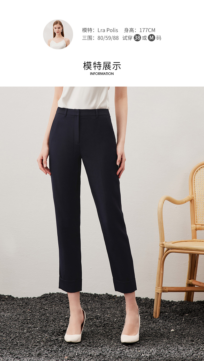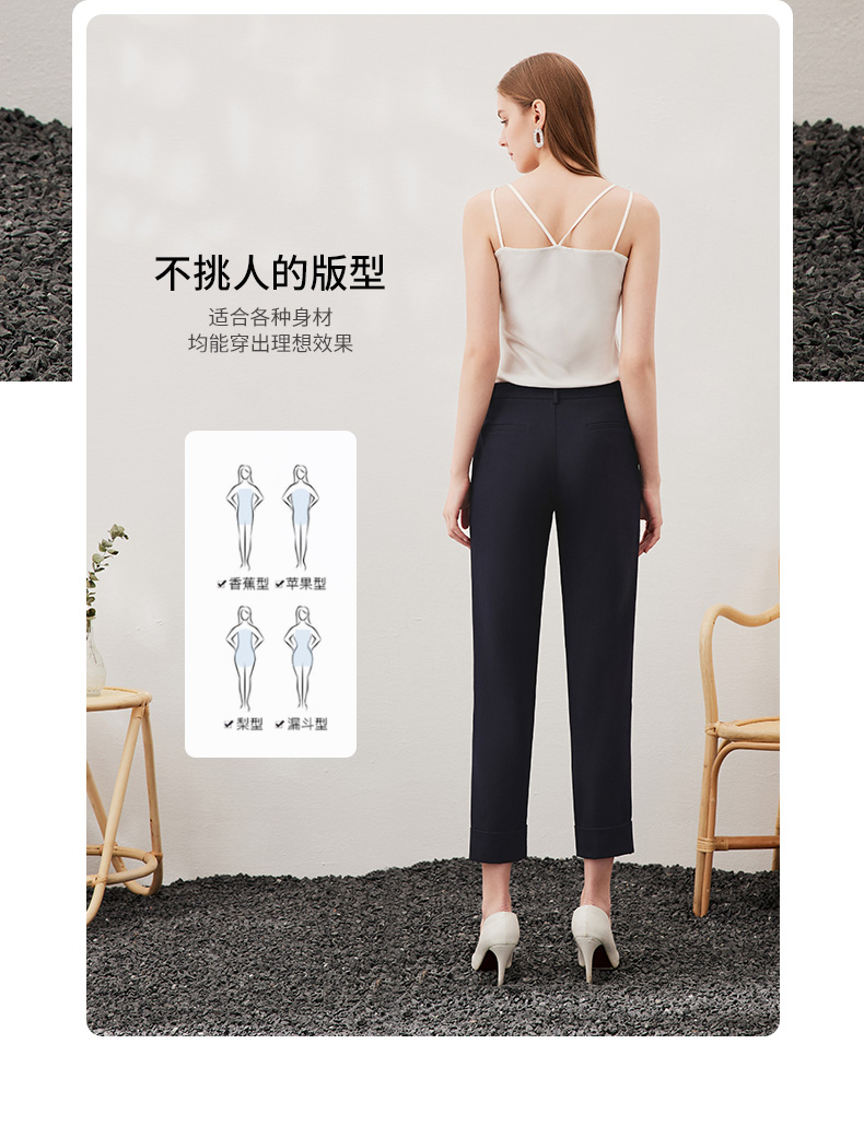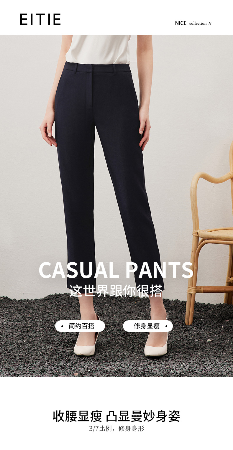 EITIE爱特爱春季新款高腰显瘦黑色微喇休闲裤女气质通勤时尚裤子A2205907