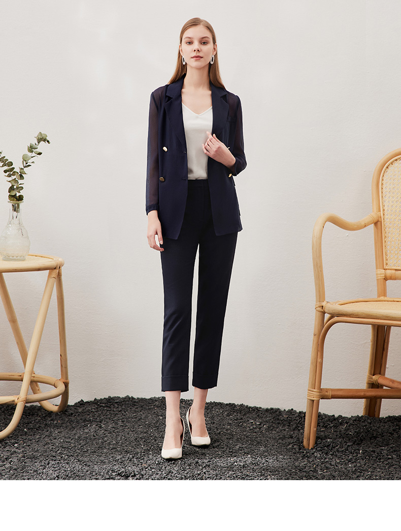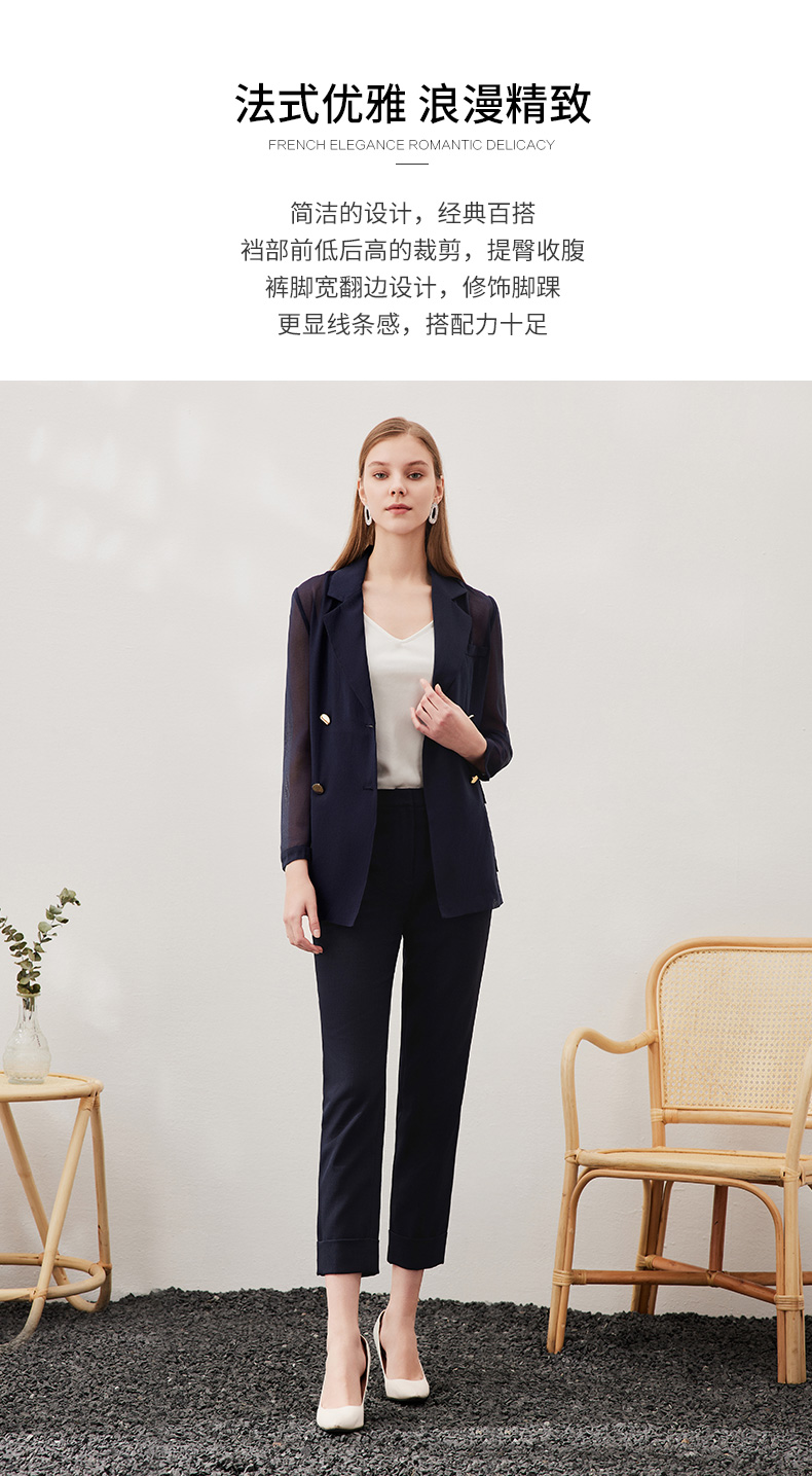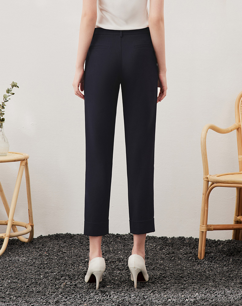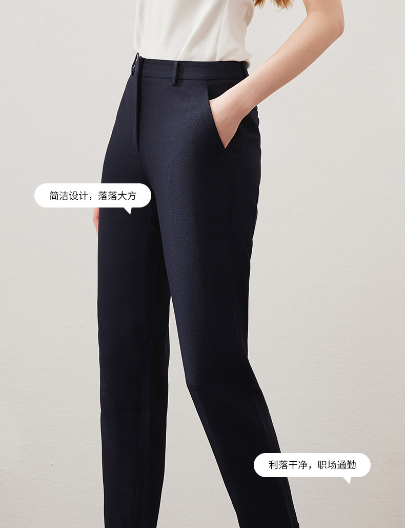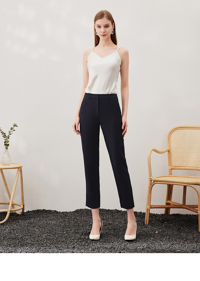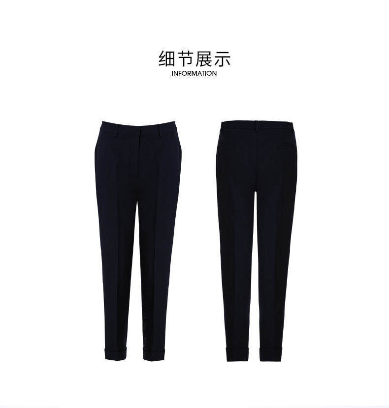 EITIE爱特爱春季新款高腰显瘦黑色微喇休闲裤女气质通勤时尚裤子A2205907