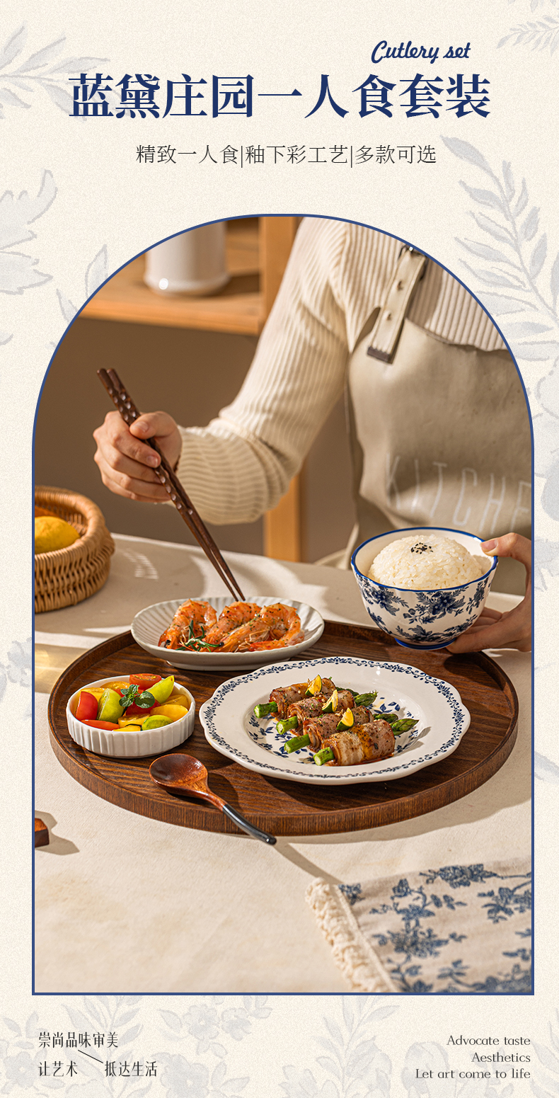 摩登主妇一人食仪式感餐具月子碗碟套装碗筷盘子精致早餐摆盘托盘