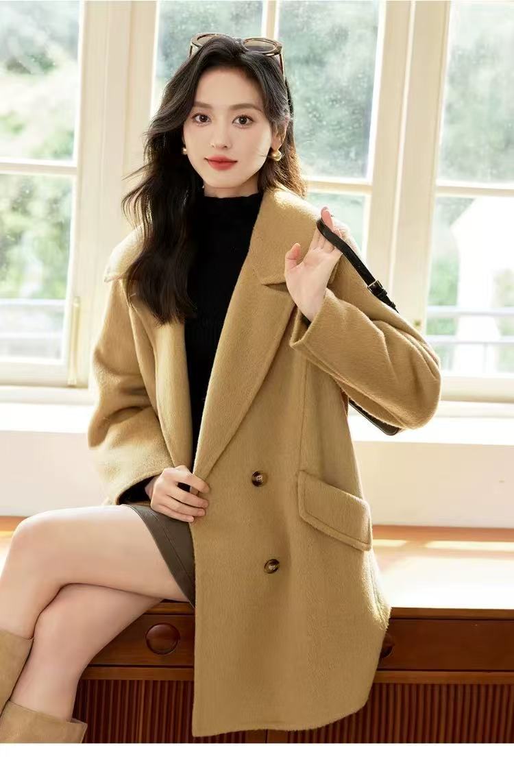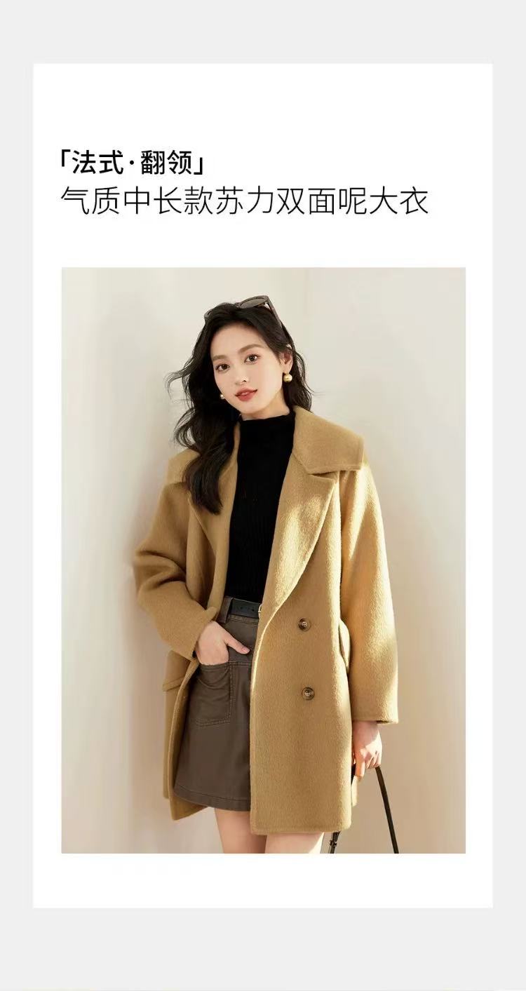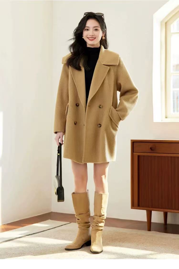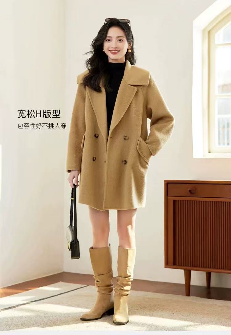 【高端系列】手工定制2301款10%苏丽羊驼毛➕90%高支羊毛双面尼中款大衣-喜出