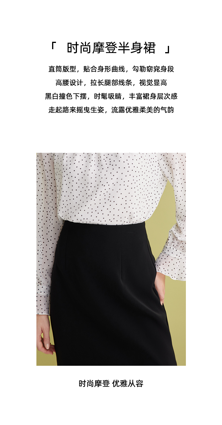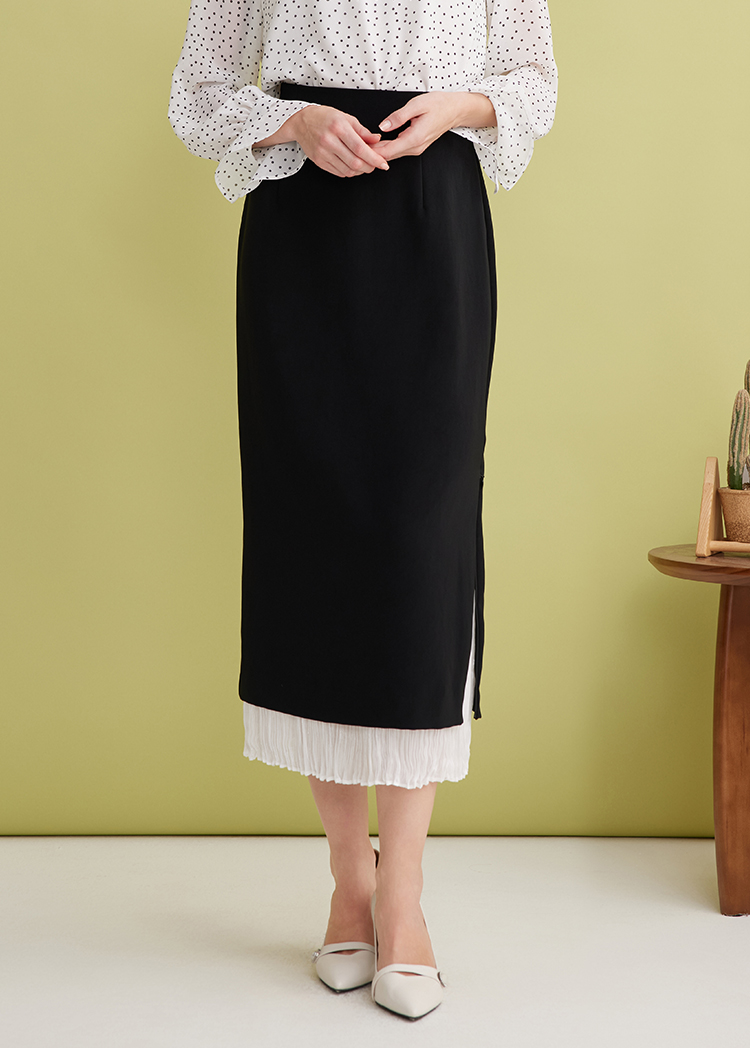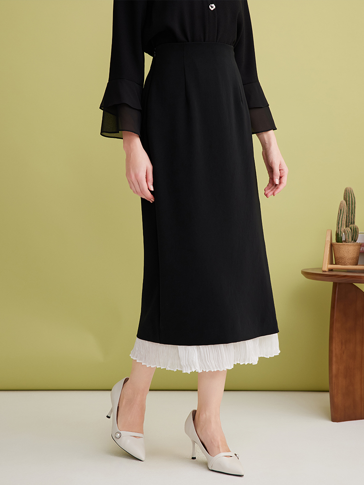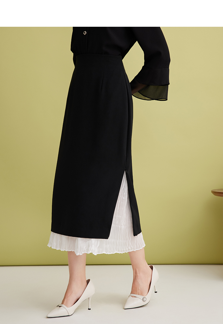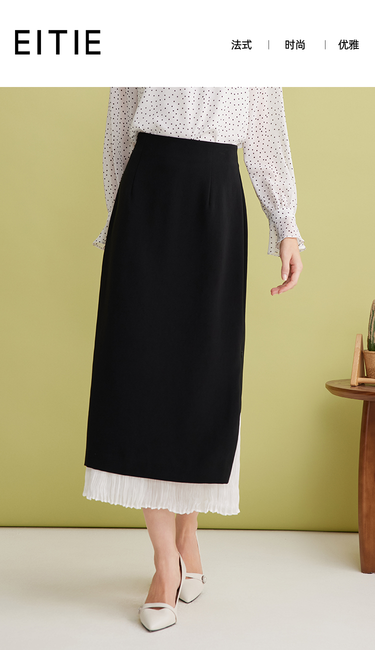 EITIE爱特爱设计感假两件压褶包臀直筒高腰撞色半身裙春新款A2506503