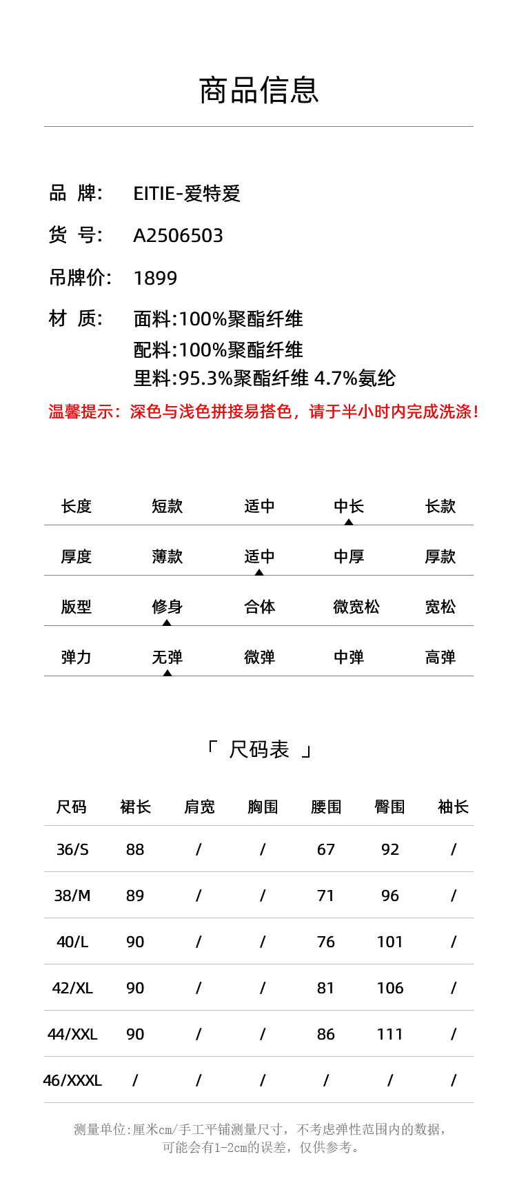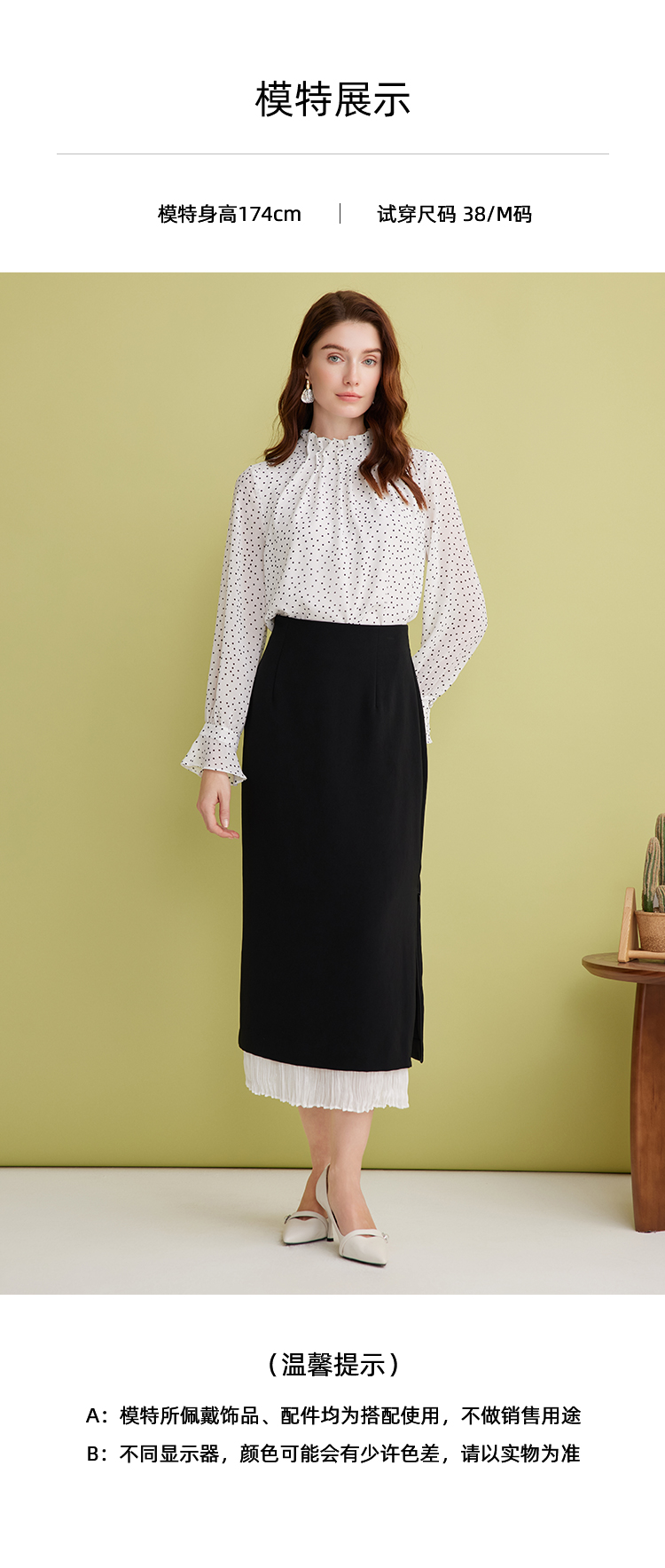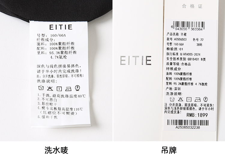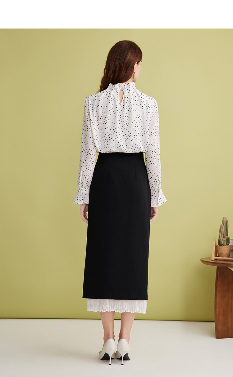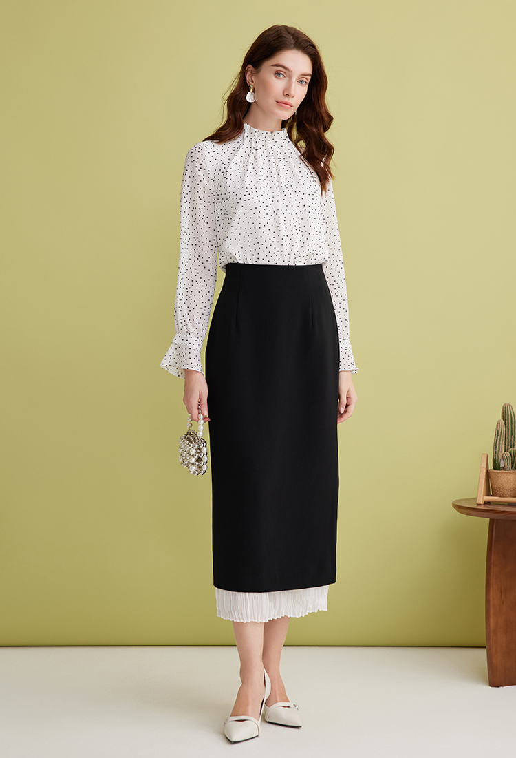 EITIE爱特爱设计感假两件压褶包臀直筒高腰撞色半身裙春新款A2506503