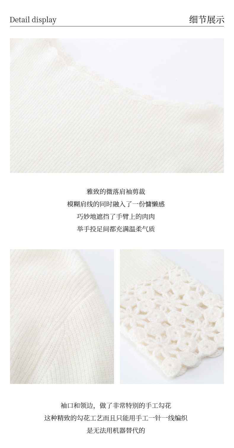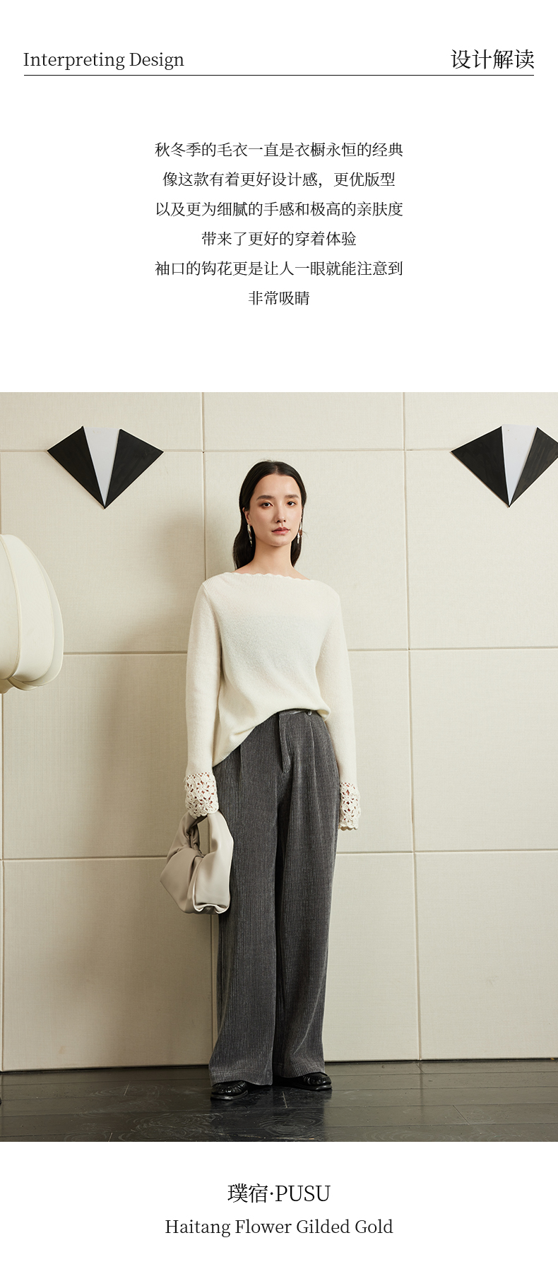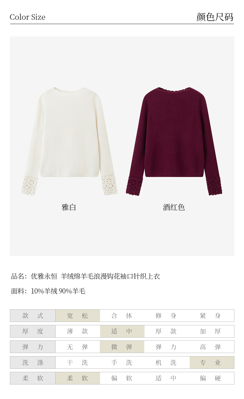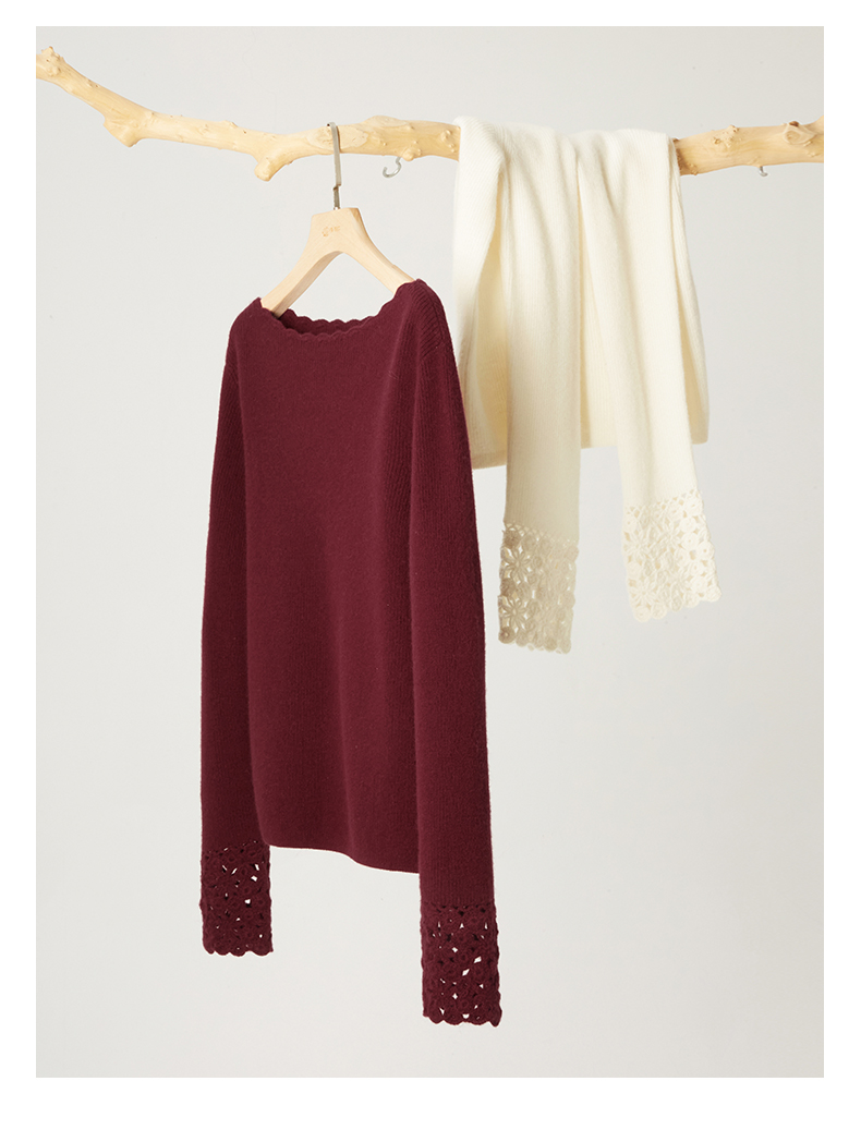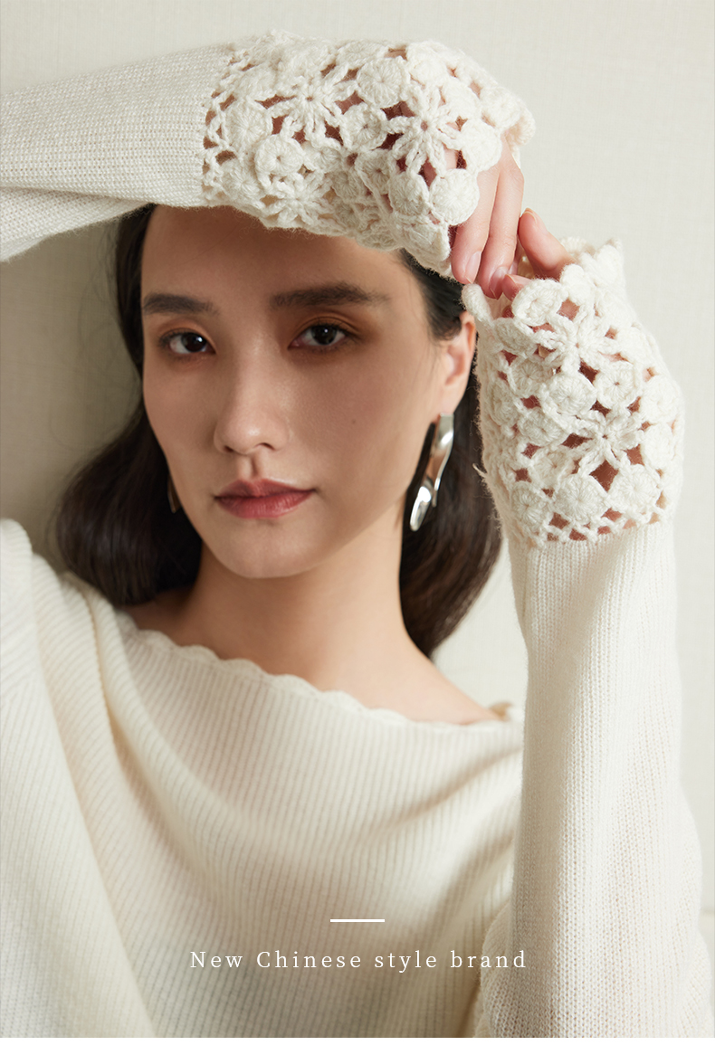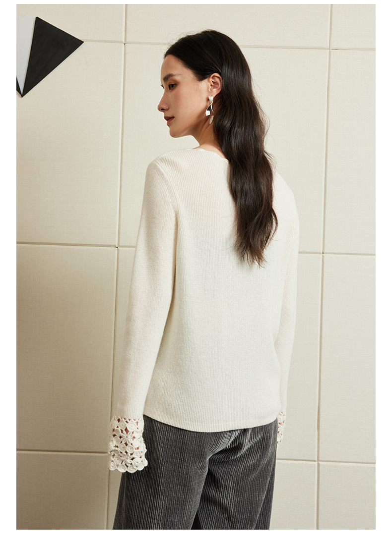54681 璞宿PUSU 优雅永恒 羊绒绵羊毛浪漫钩花袖口针织上衣