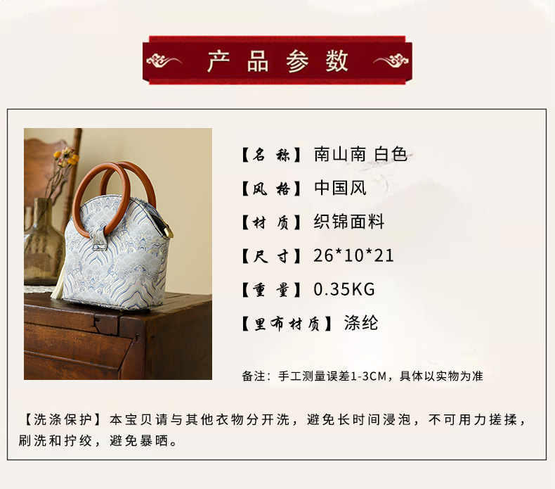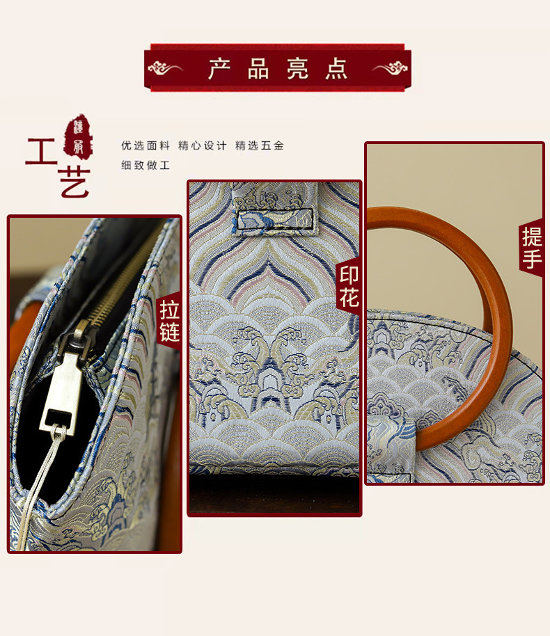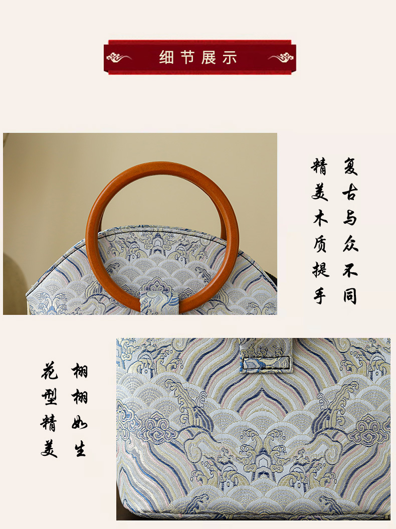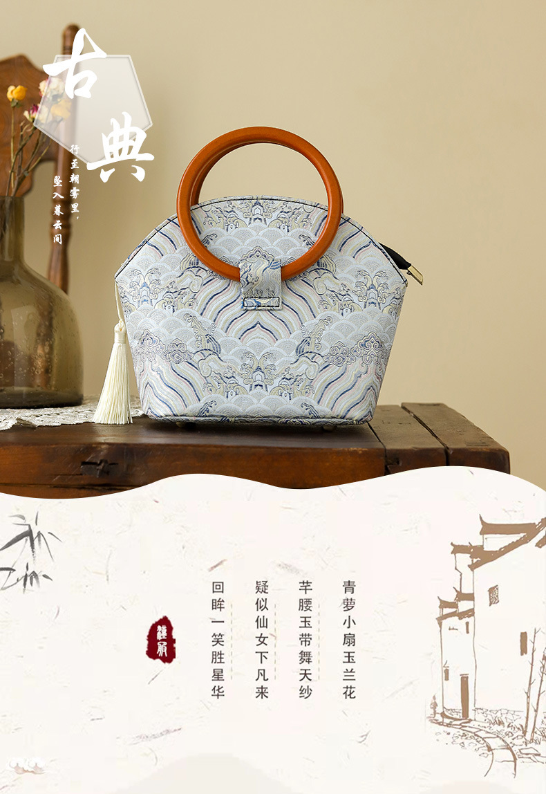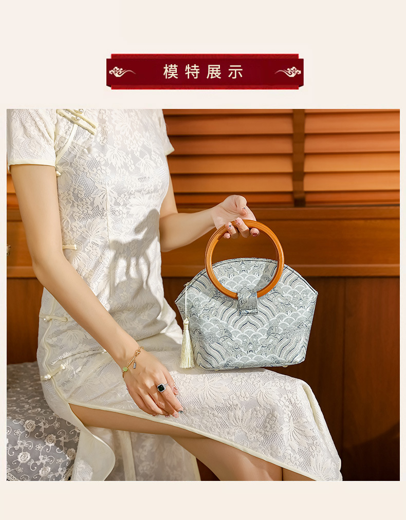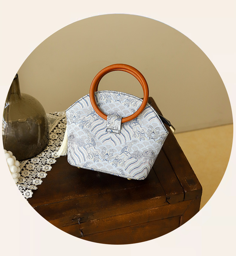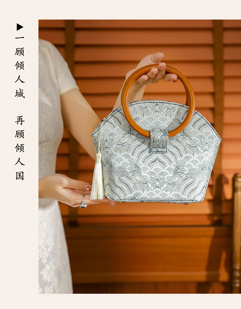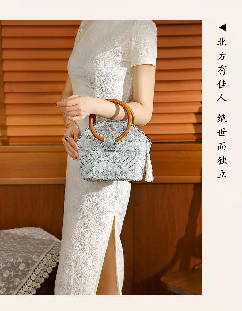木柄圆环贝壳手提包,旗袍汉服古风包包JX-南山南