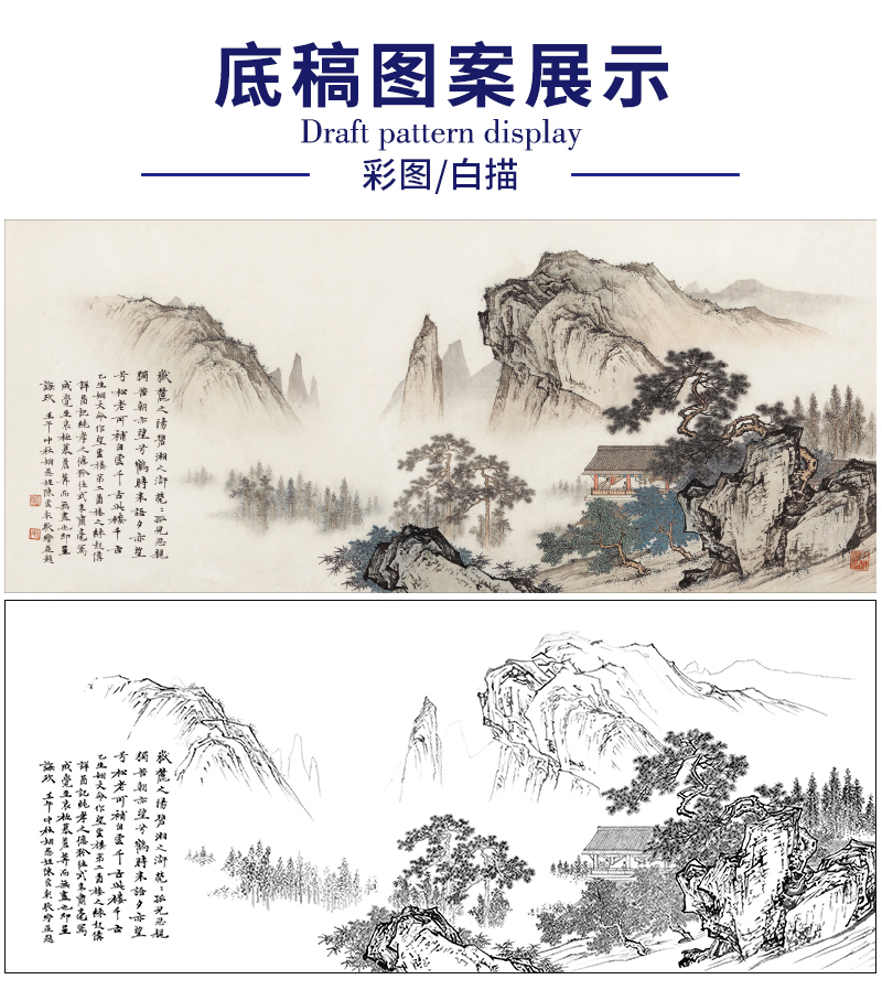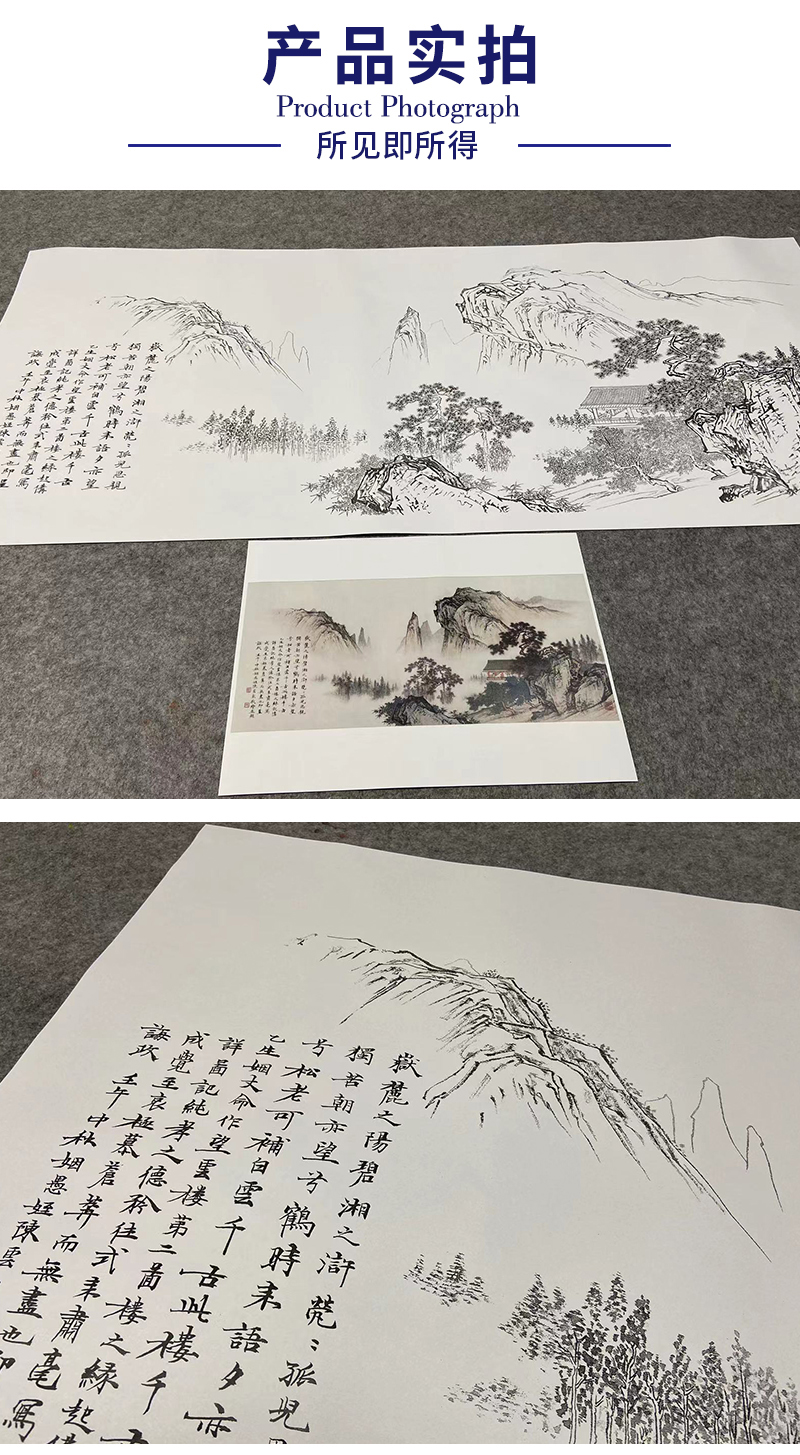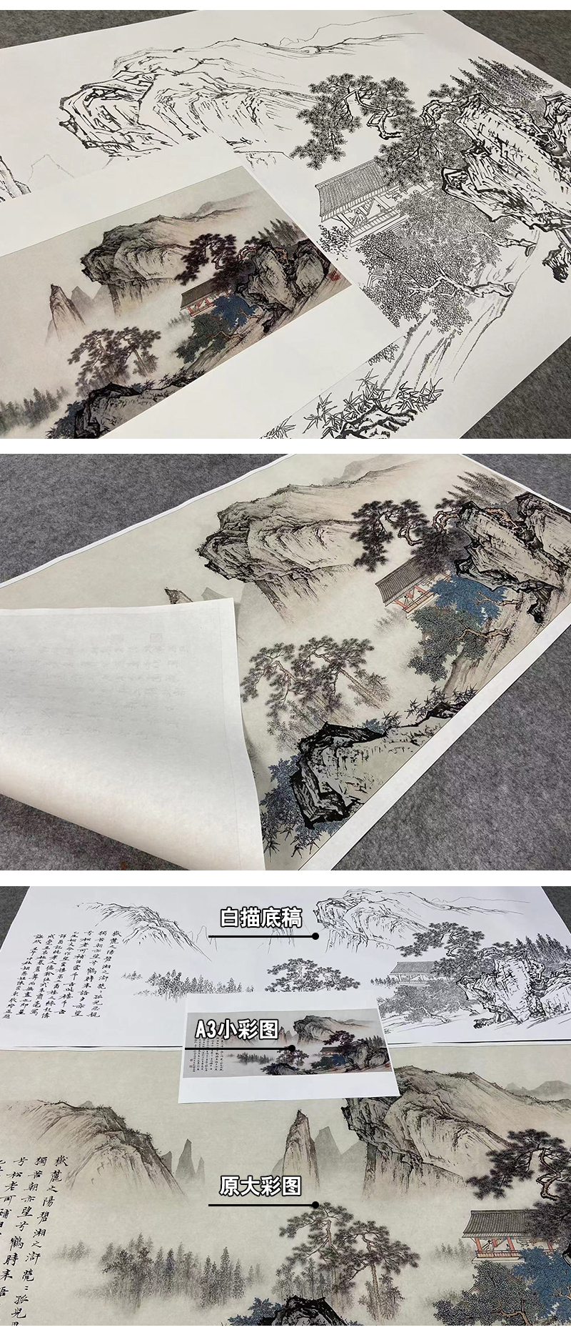 【大彩图】陈少梅横幅工笔画白描底稿《望云楼》山水临摹勾线高清打印稿SV21