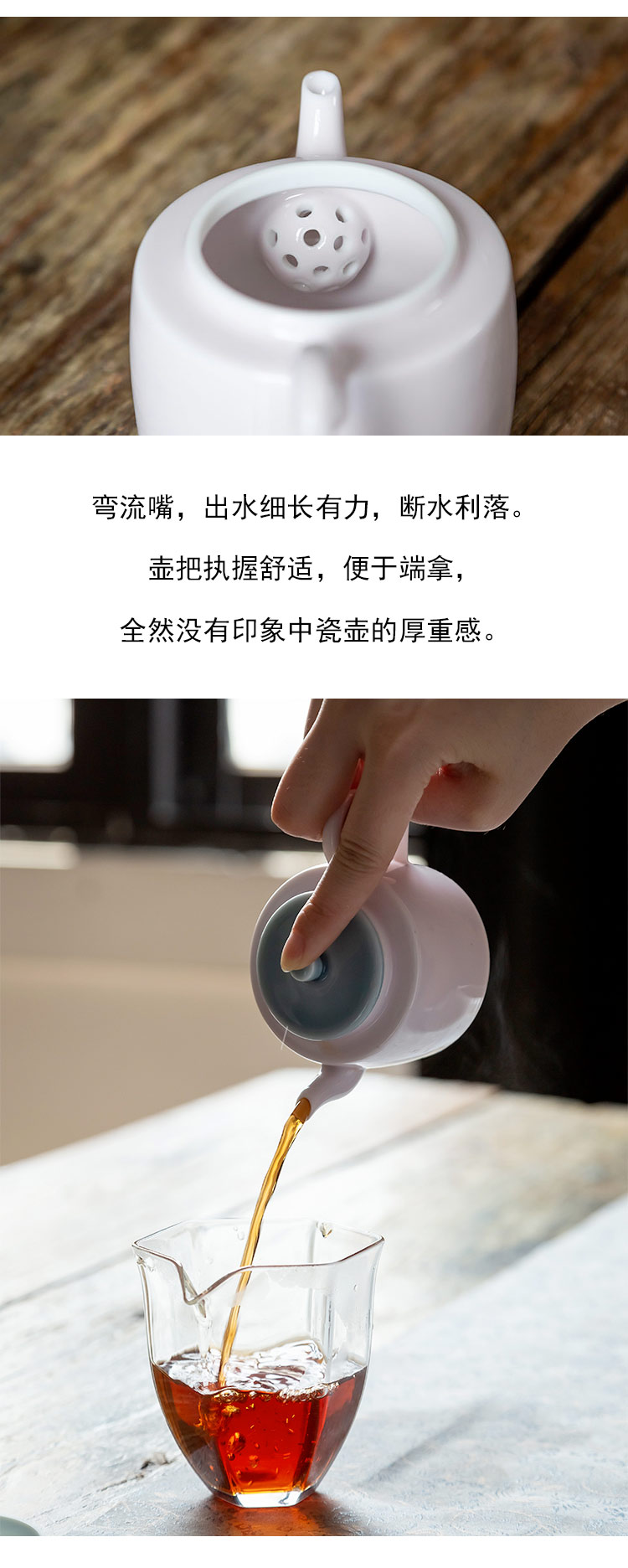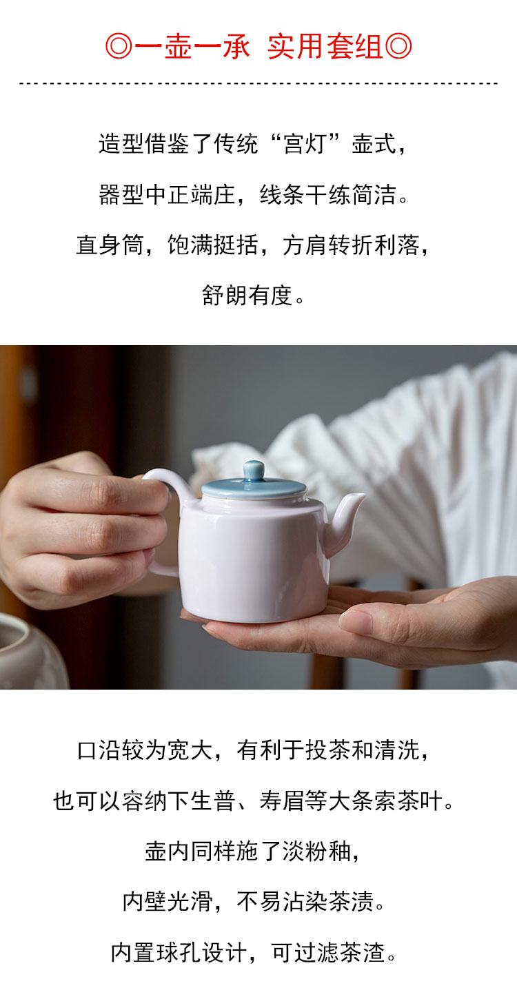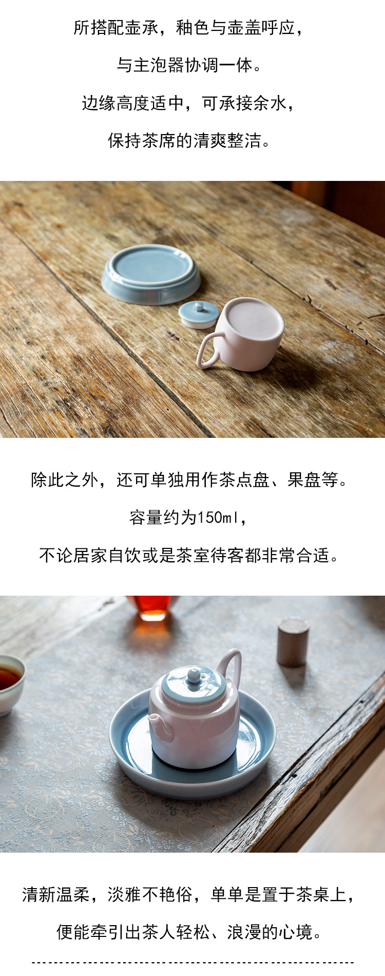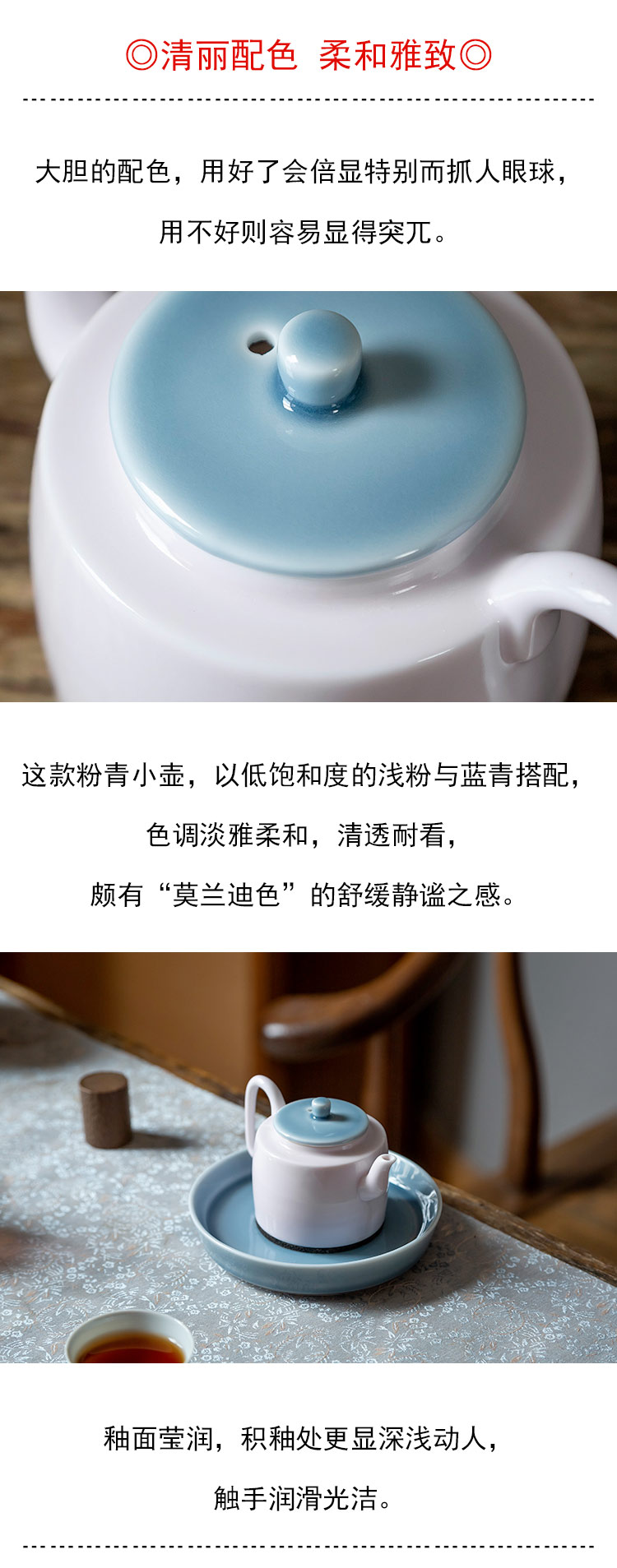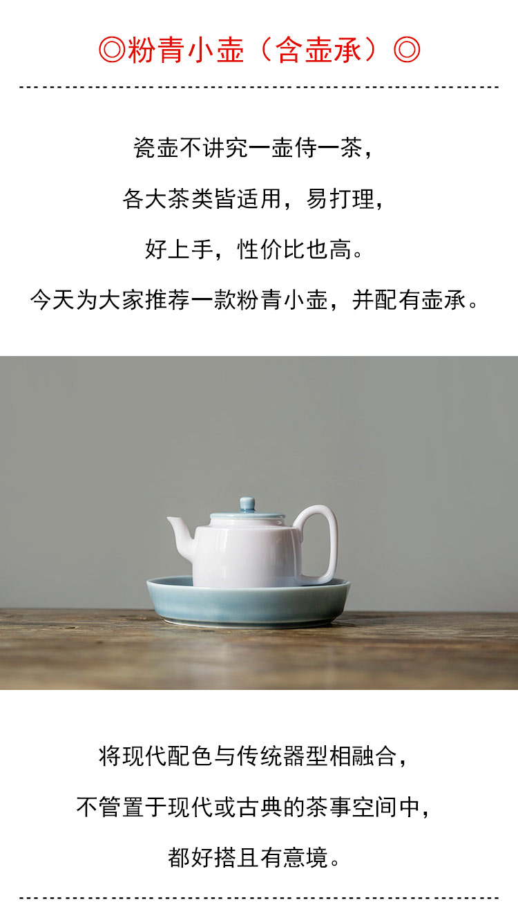 茶香记 粉青小壶(含壶承)清雅配色瓷壶茶壶150ml古典壶型礼盒装