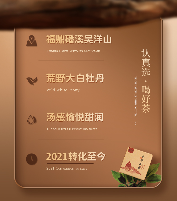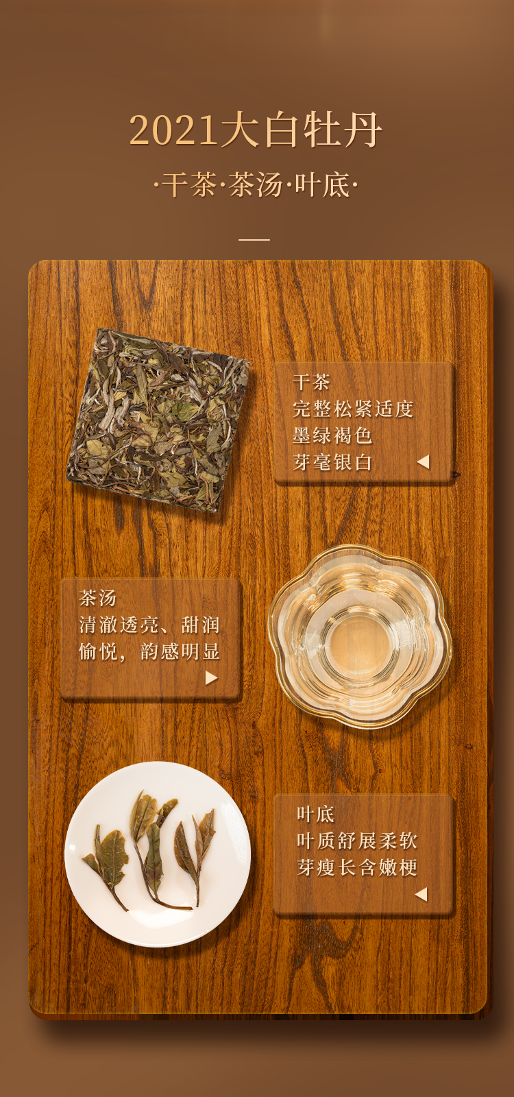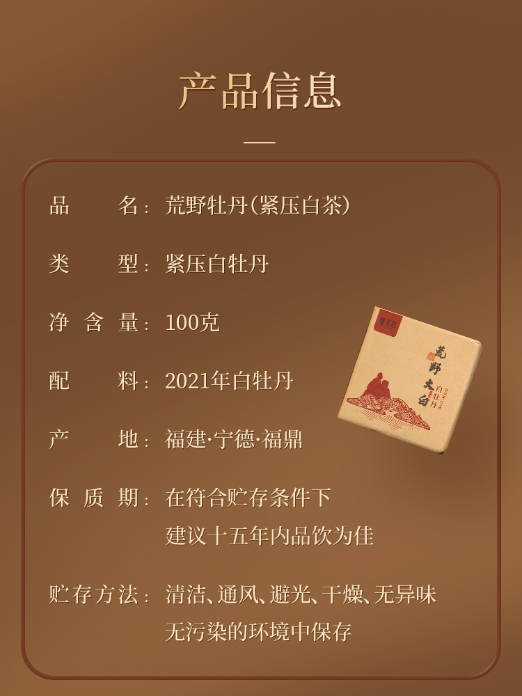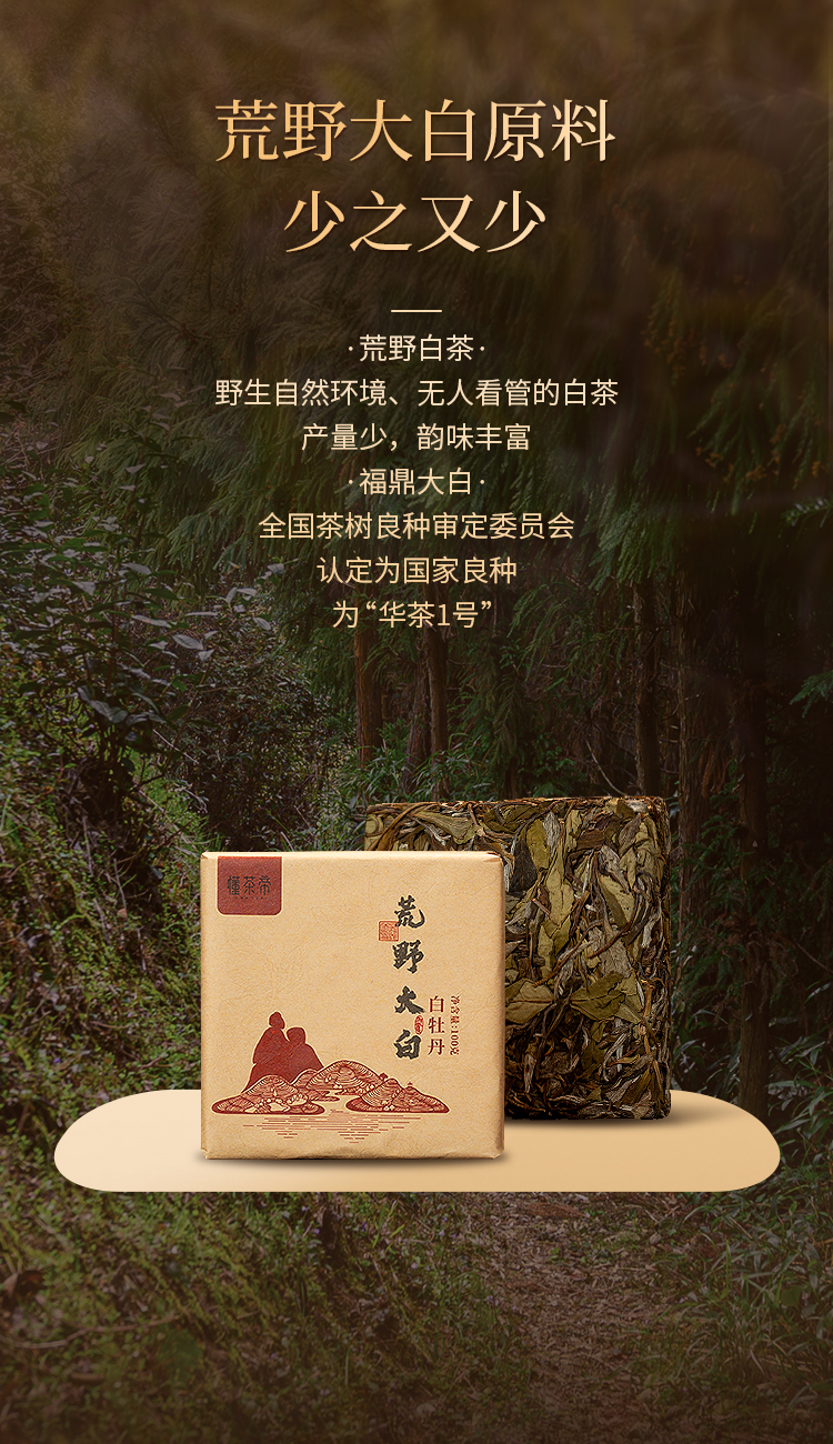 懂茶帝-福鼎白茶吴洋山2021年荒野大白(白牡丹)100g/砖