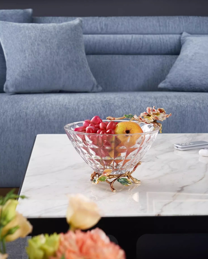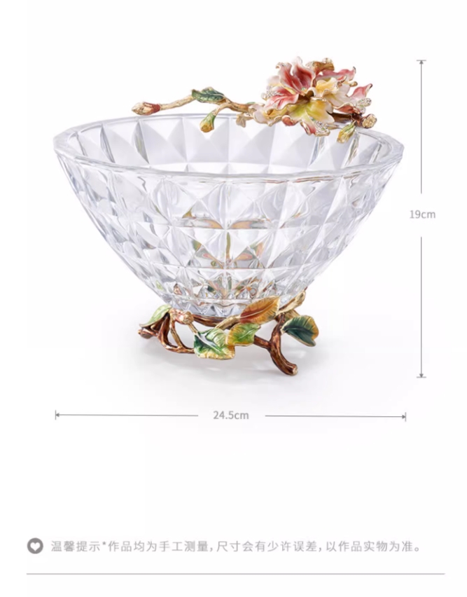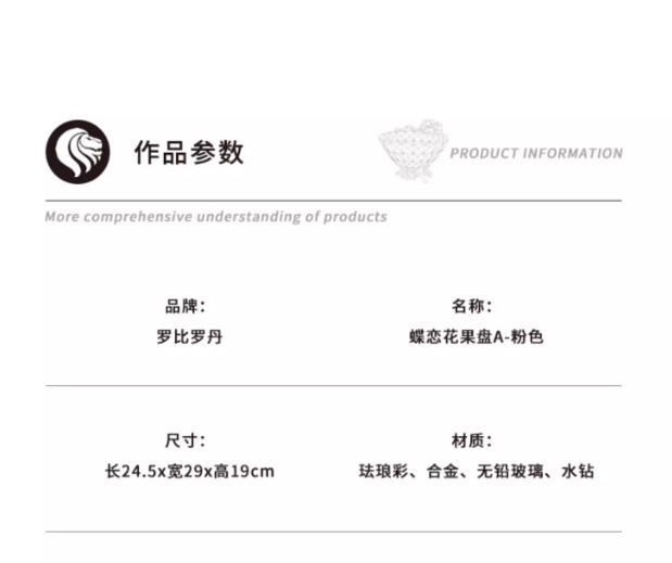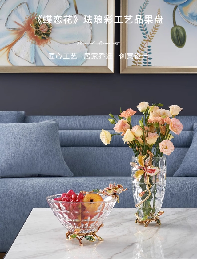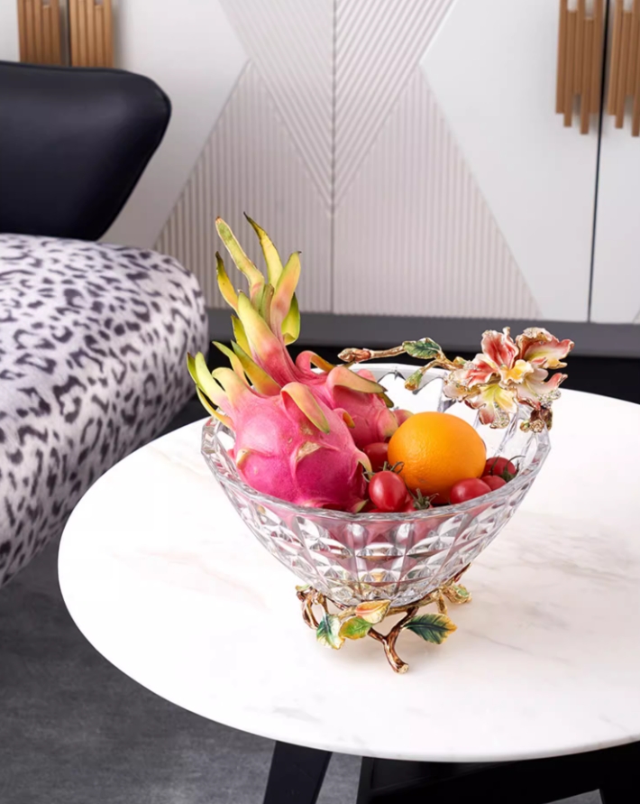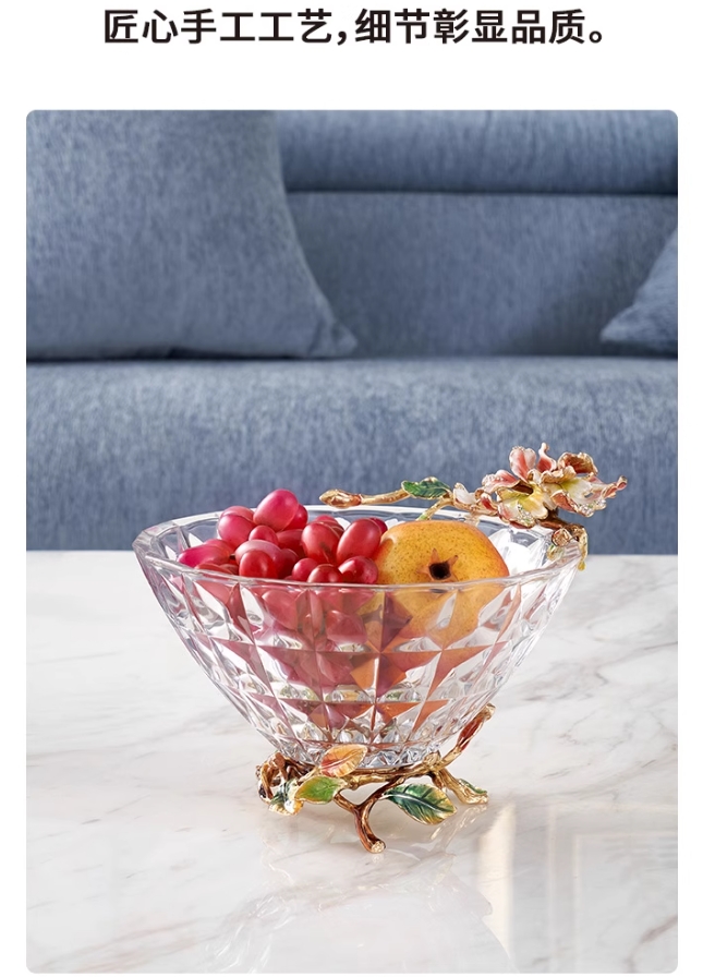 【彼达思】罗比罗丹蝶恋花果盘A粉色2023新款餐厅茶几珐琅彩果斗水果盘