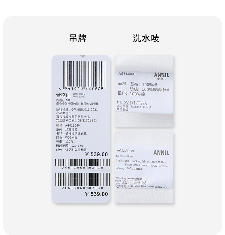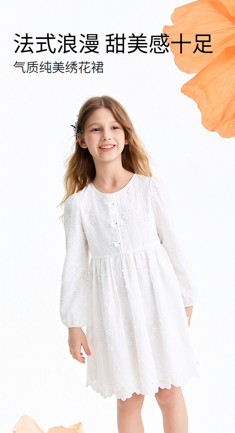 【实体店同款】女童长袖梭织连衣裙春季新款安奈儿童装AG613060