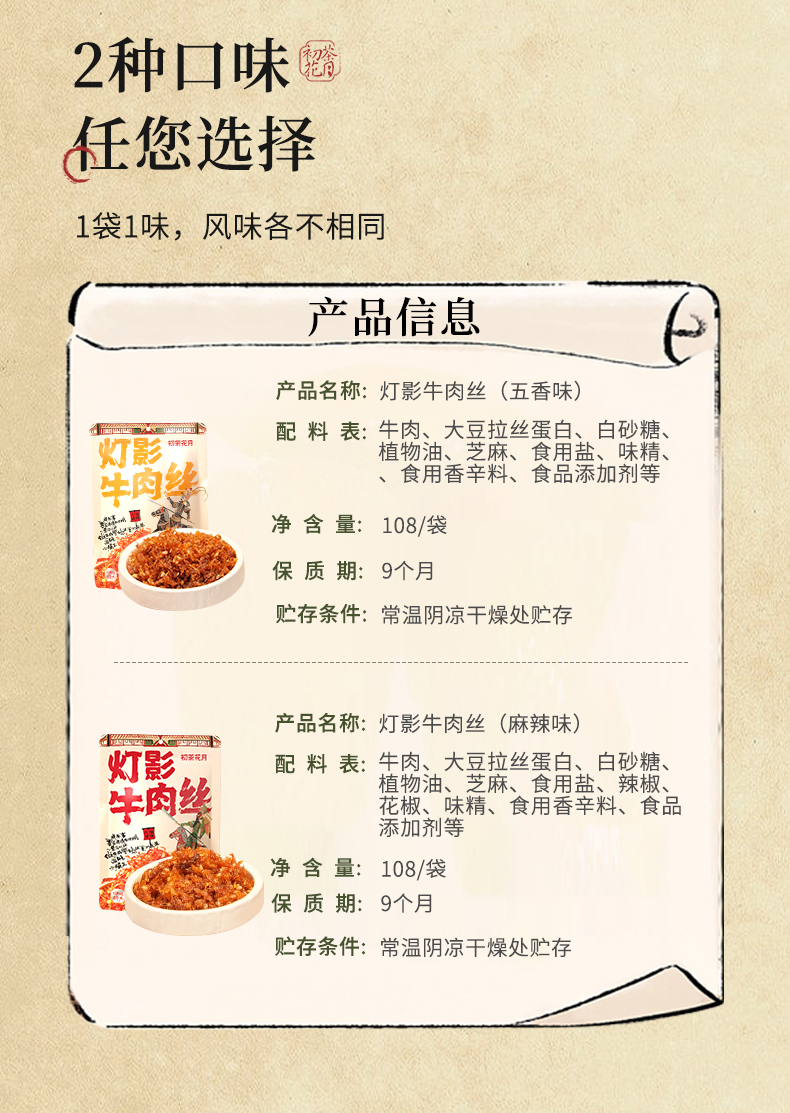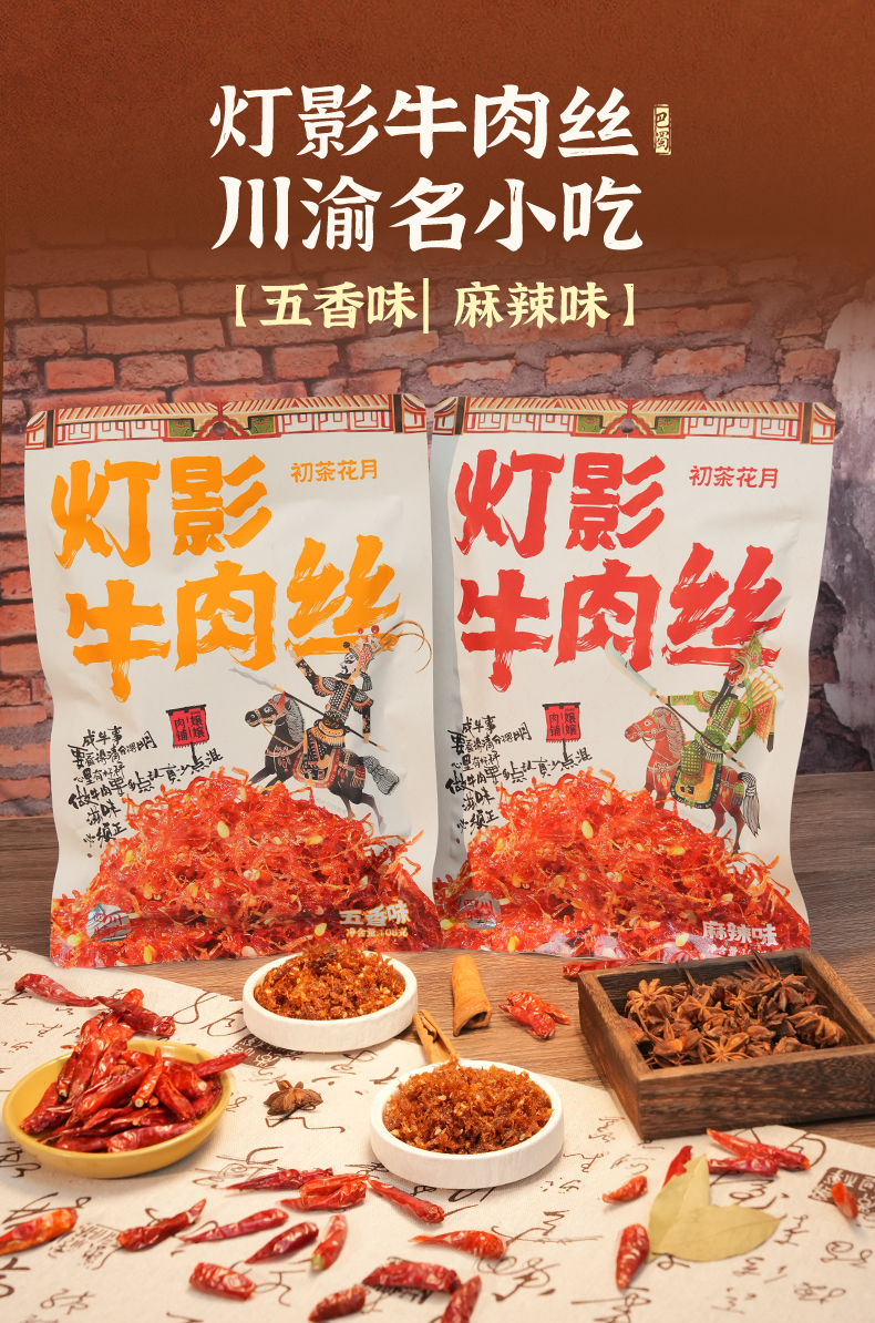 【新品尝鲜】初茶花月灯影牛肉丝 三种口味 独立包装