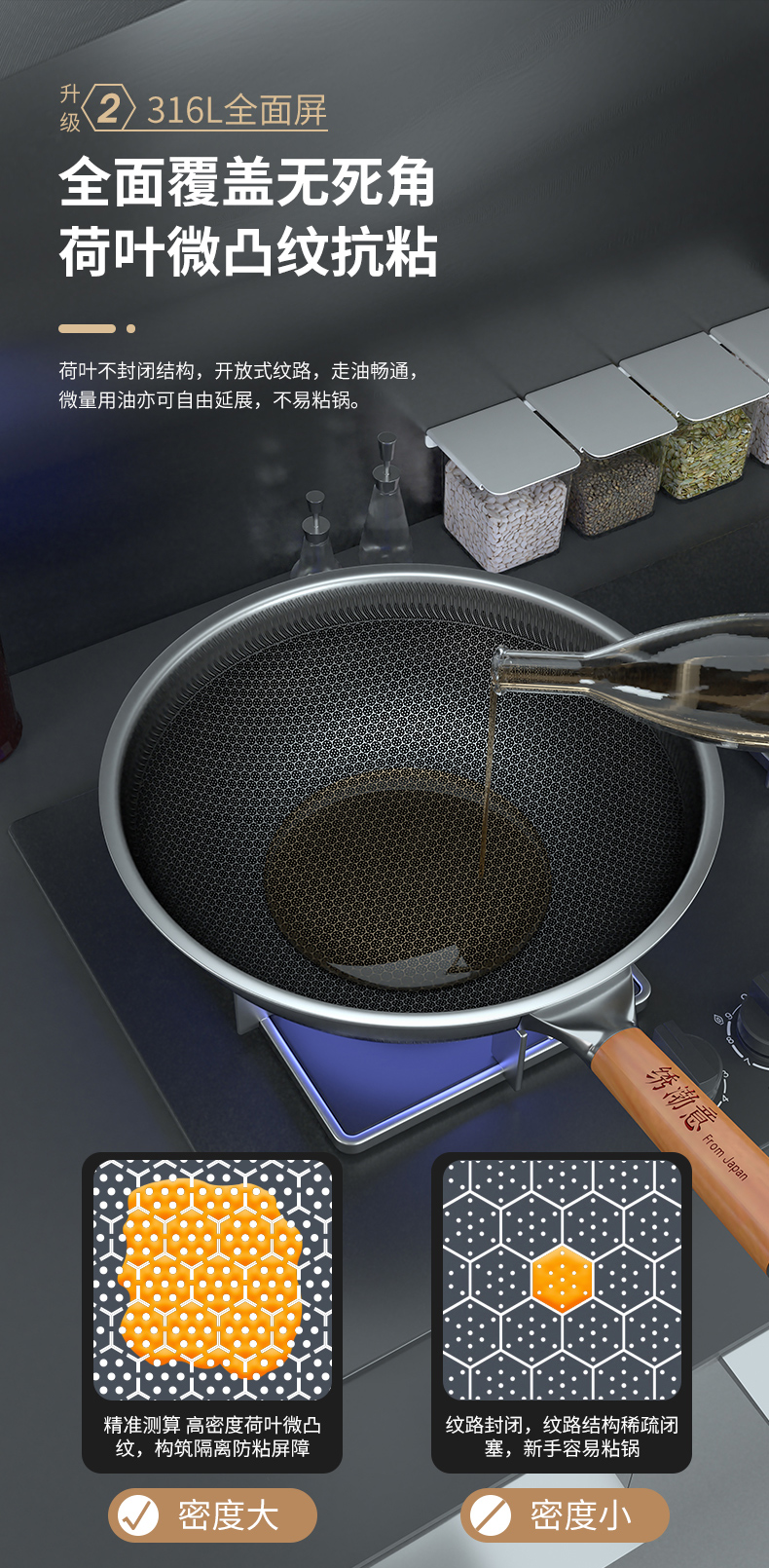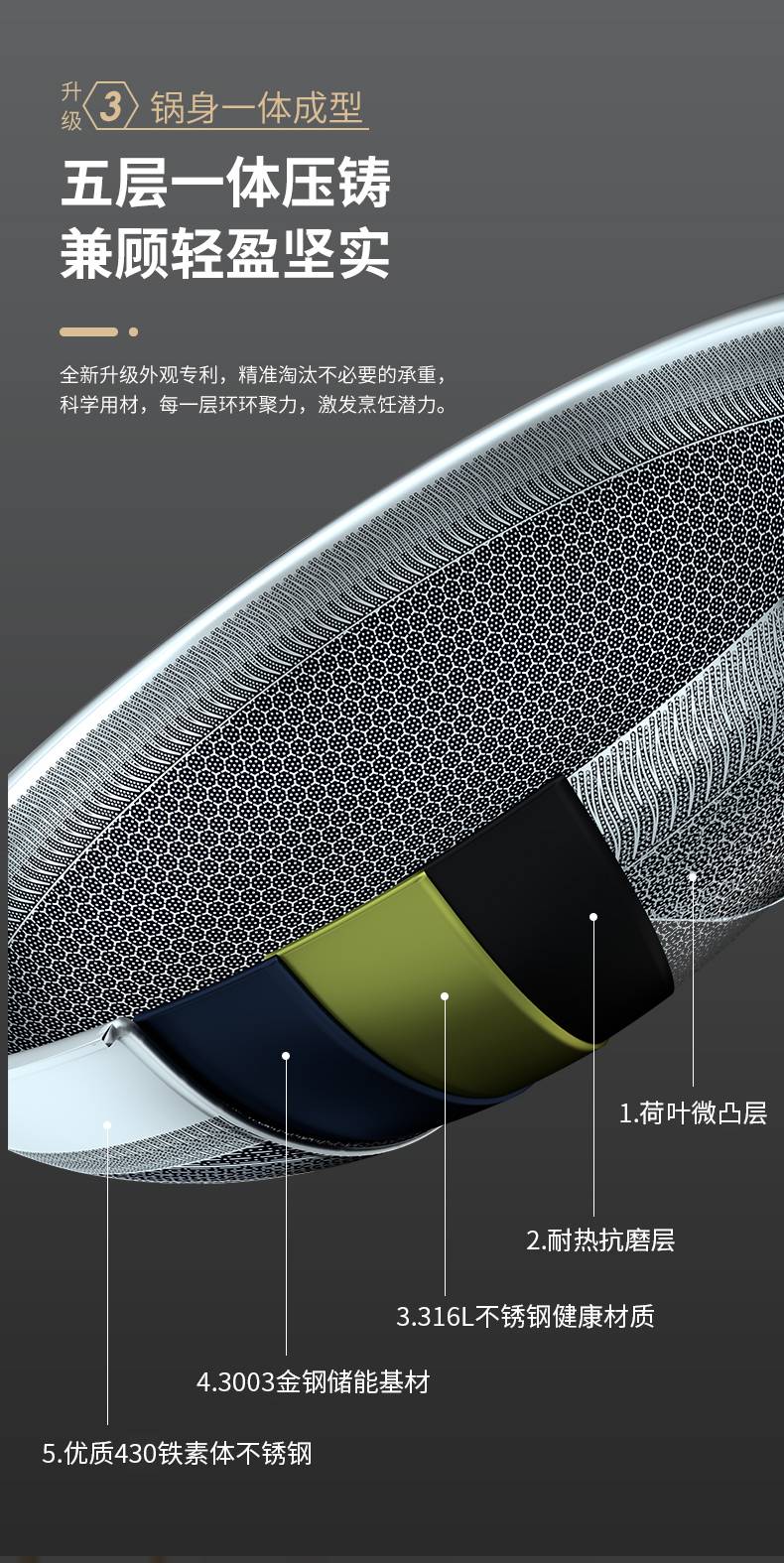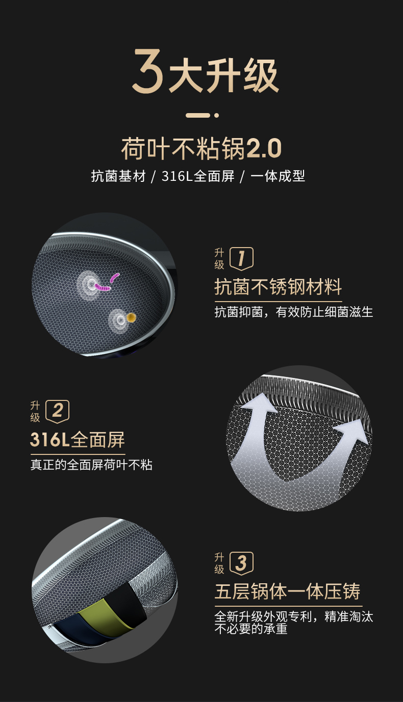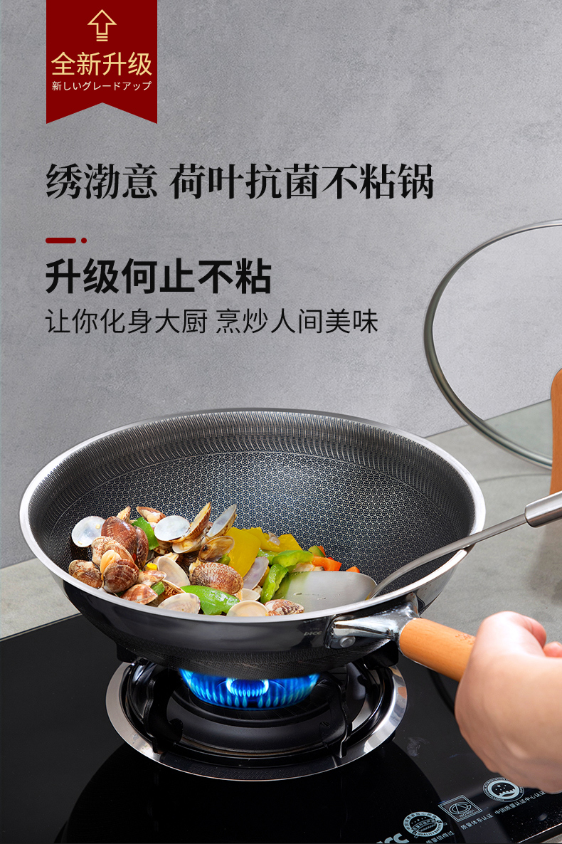 绣渤意荷叶系列32cm蜂窝不锈钢中式炒锅