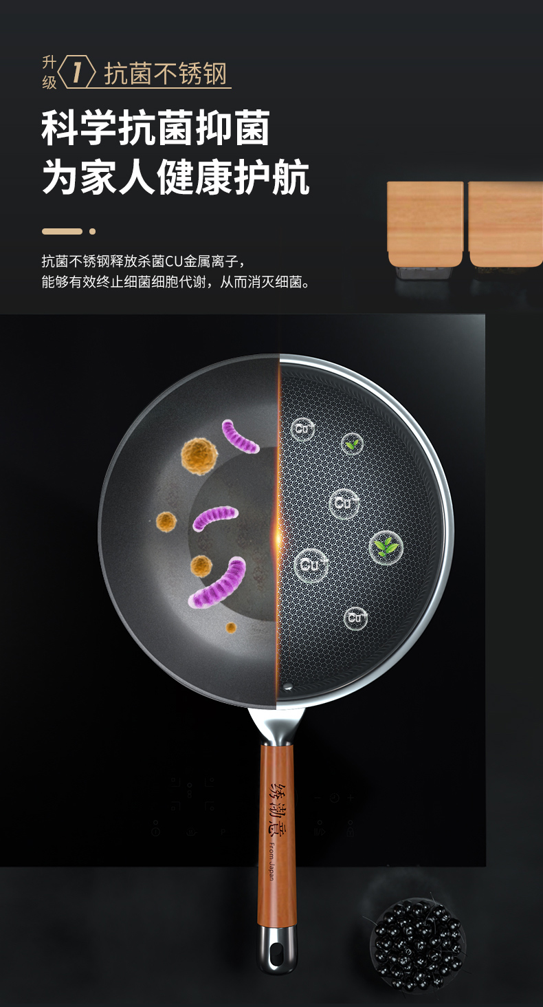 神田高端线珐琅釉 钛彩米系列0涂层不粘炒锅30cm/32cm,久烧不黑,质保30年
