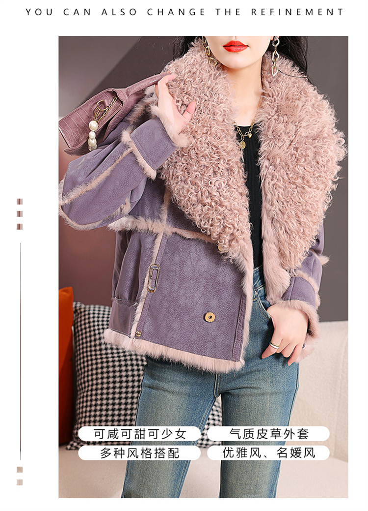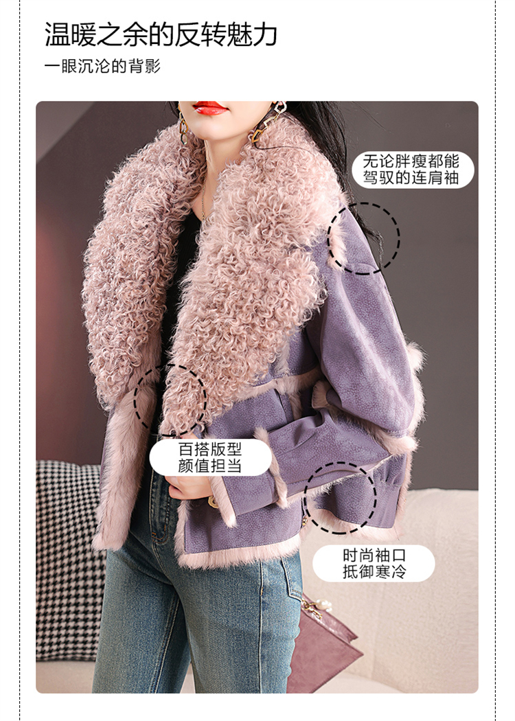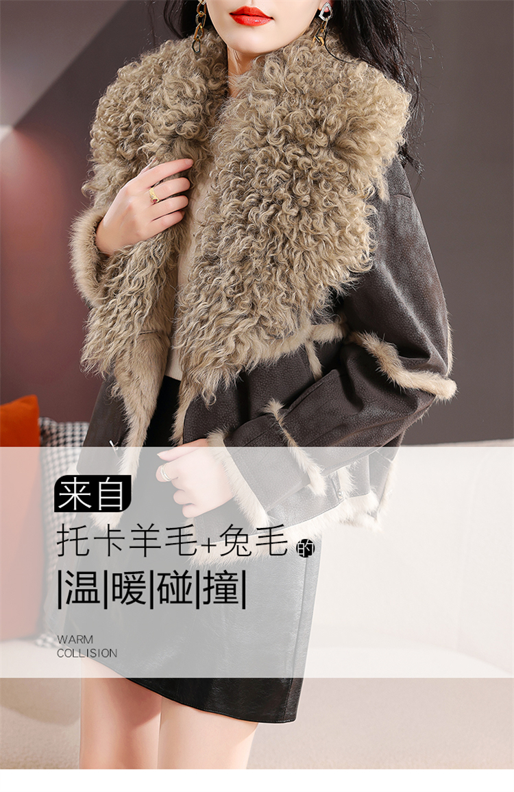冬季新款,兔毛羊毛拼接皮草外套HR-MXG2419