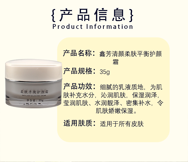 鑫芳清颜柔肤平衡护颜霜35g美容院正品直发补水保湿细腻柔滑