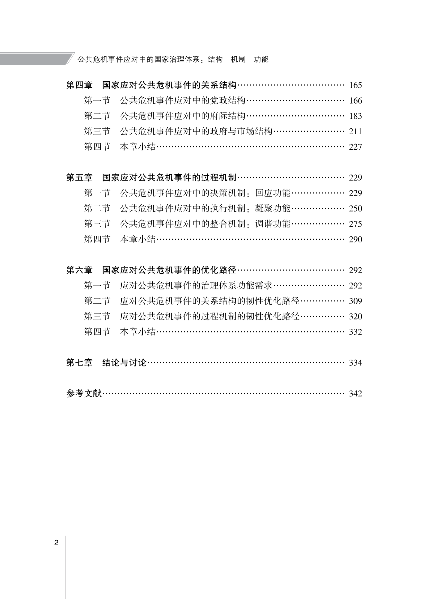 书稿从国家治理层面,在“宏观-中观”两条互嵌的线索上沿着“结构-机制-功能”三个逐层递进的层次分析公共事件应对中的国家治理体系。主要包括:第一条线索,宏观的历史演进线索。第二条线索,中观的体系运行线索,将治理体系作为一个分析性意义上的整体概念,提出一个关于解释治理体系的分析框架:“结构-机制-功能”,结构、机制、功能三个层次的因素相互作用,共同作用于治理体系运行。书稿认为,安全与发展的应对理念得到不断的更新迭代,“以人民为中心”的价值取向始终贯穿其中。书稿建构的“结构-机制-功能”分析框架,为国家治理体系视角下的公共事件应对研究提供了可供借鉴、比较与扩展的空间,丰富了国家治理体系和治理能力现代化研究的实践样本。