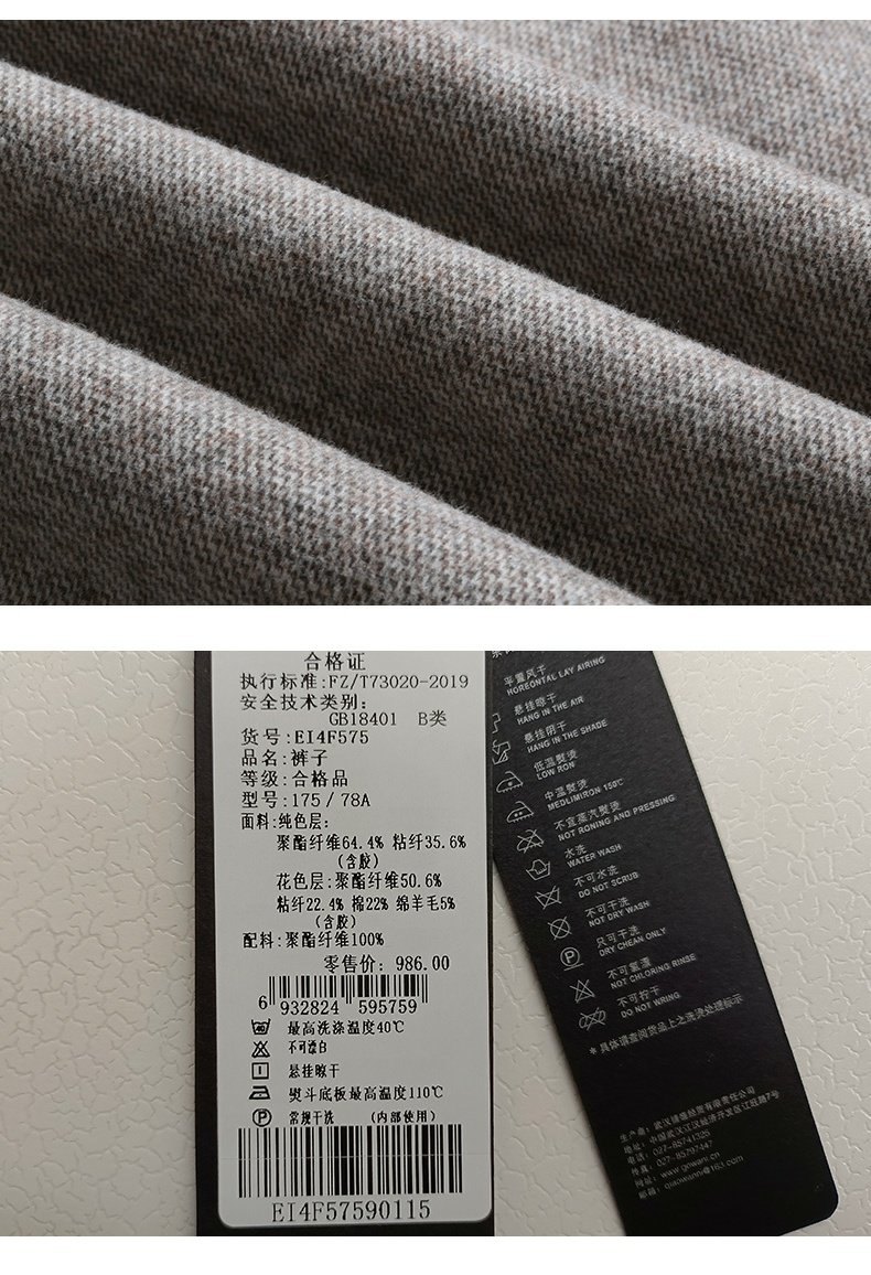 乔万尼秋冬保暖直筒裤厚实舒适精致高级感长裤显瘦EI4F575