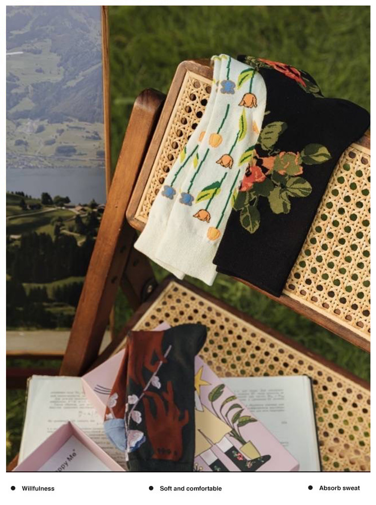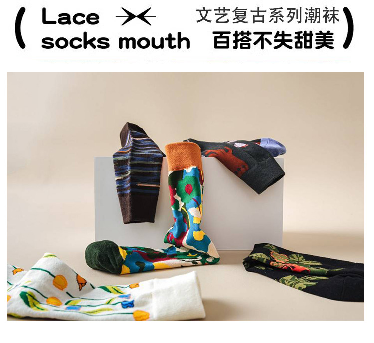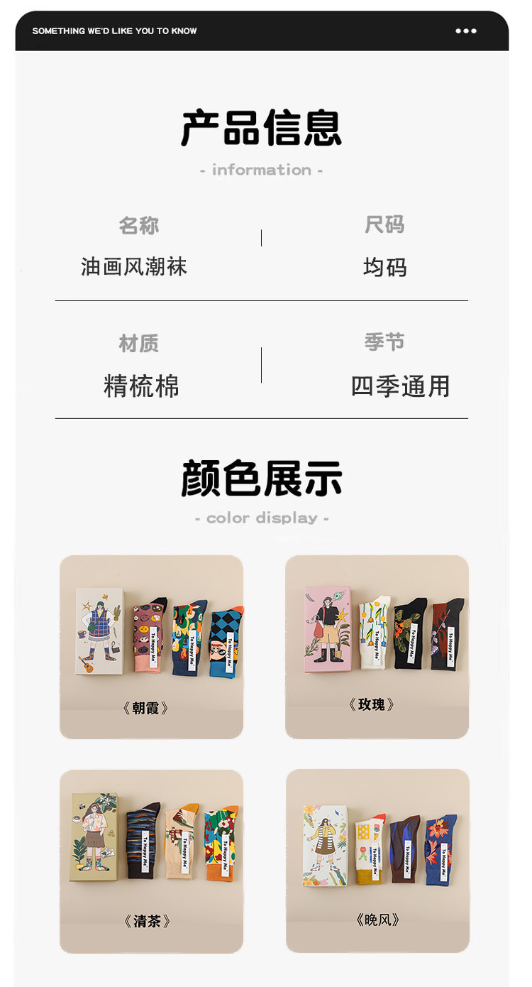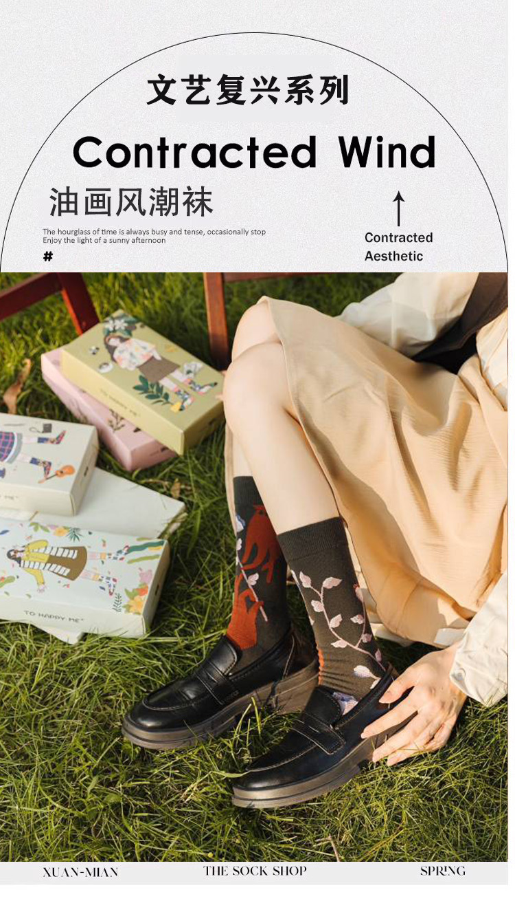 艺术彩色油画纯棉袜6双礼盒装 品质好棉 不易起球 不易变形 相当舒适柔软 精美礼盒装 一盒三双 自留 送礼都超可