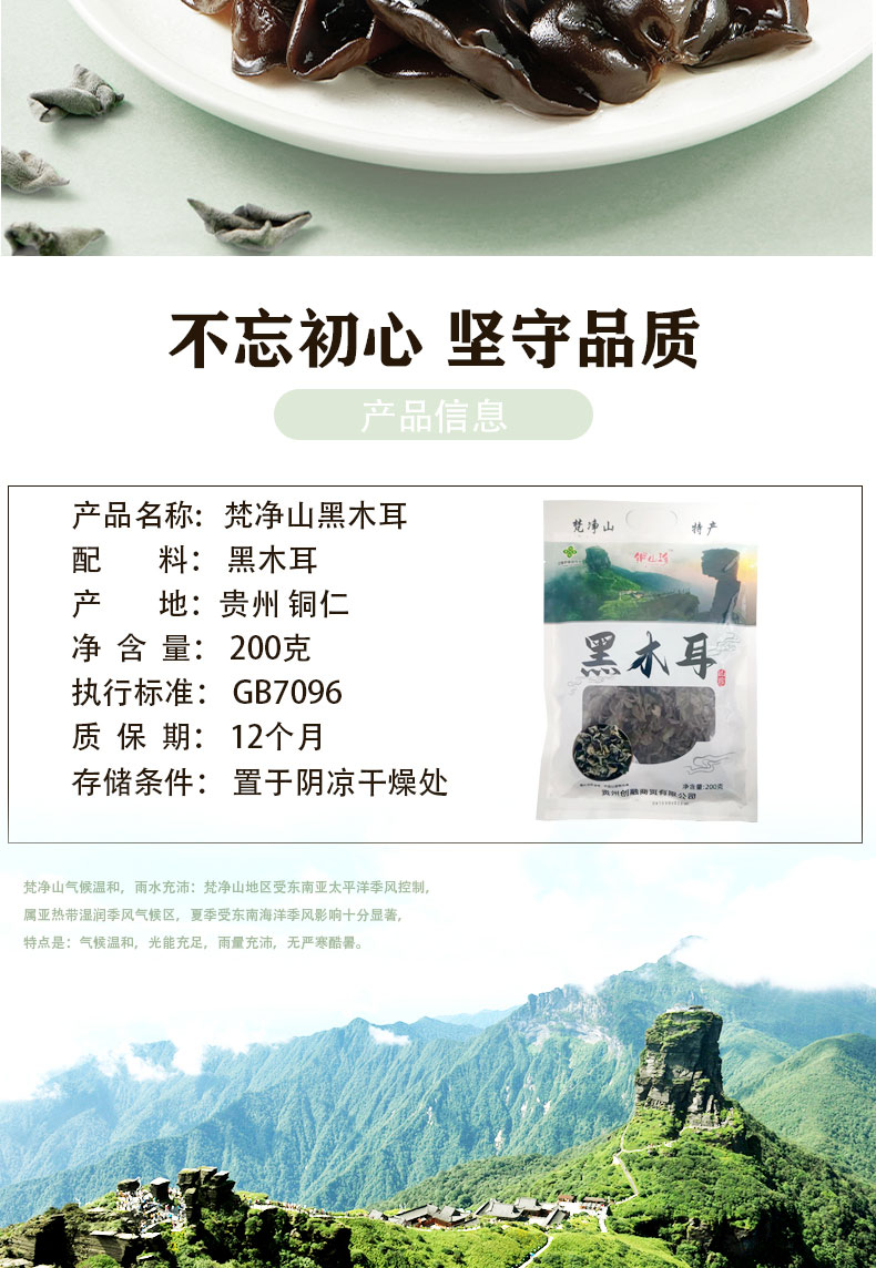 铜仁碧江【梵净山黑木耳】200g 高泡发率 脆爽劲道 全国包邮(部分地区不发货)