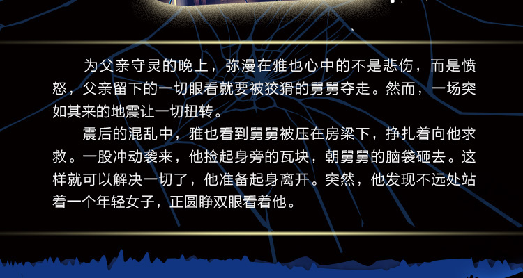 为父亲守灵的晚上,弥漫在雅也心中的不是悲伤,而是愤怒,父亲留下的一切眼看就要被狡猾的舅舅夺走。然而,一场突如其来的地震让一切扭转。