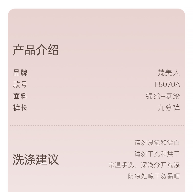 梵美人 F8007L 瑜伽九分裤 无松紧 裸感 无尴尬线