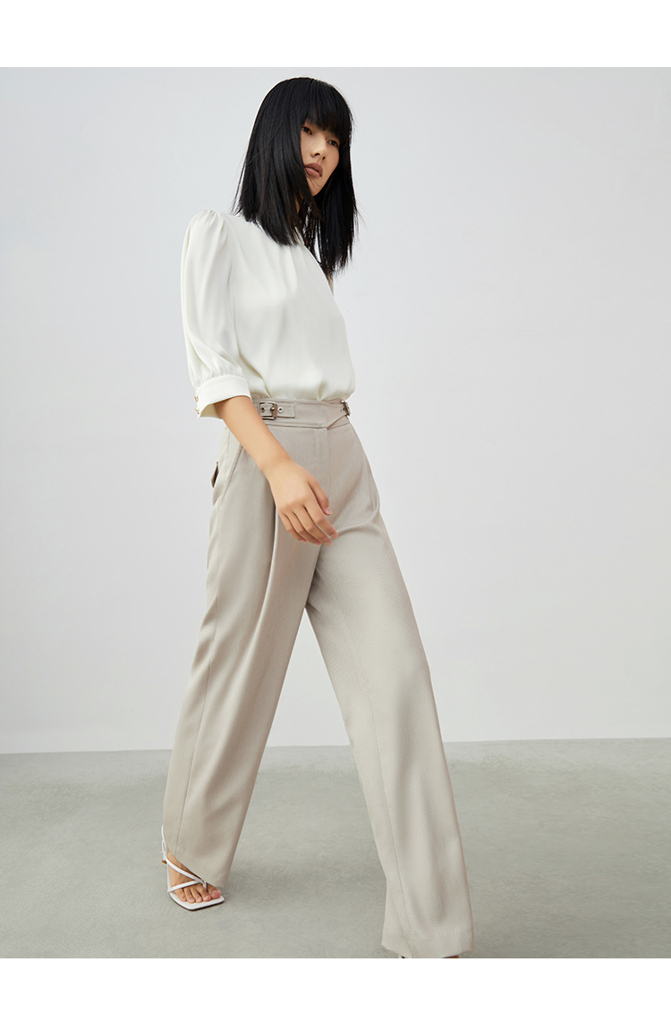 VIMAGE纬漫纪春季新款修身显瘦百搭高腰直筒西装裤子休闲裤V1705307
