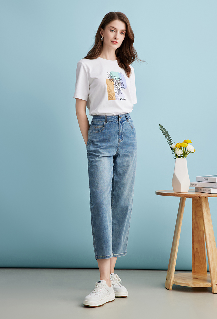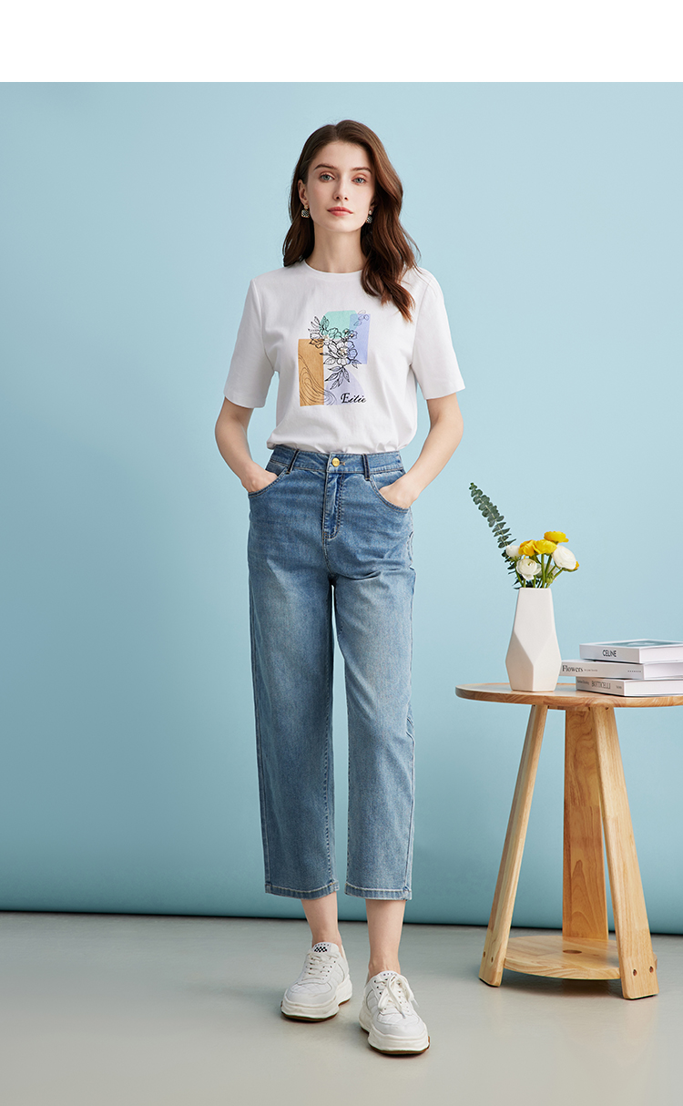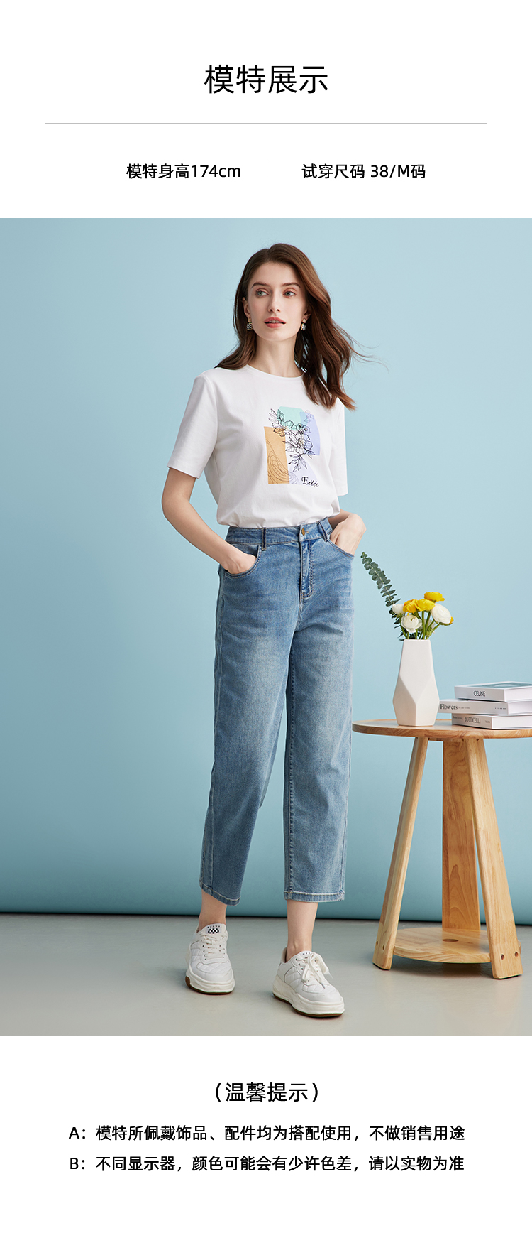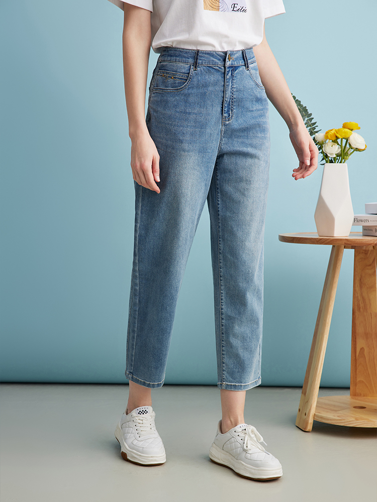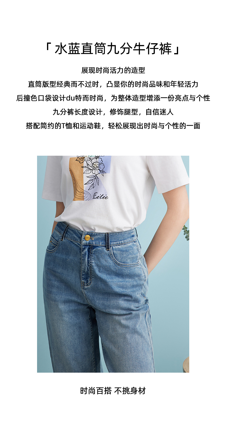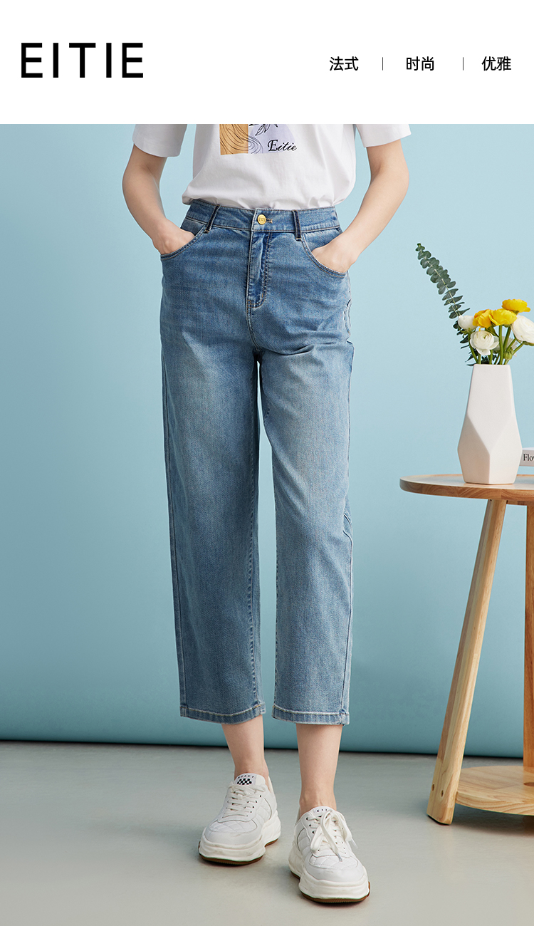 EITIE爱特爱经典高腰显瘦通勤百搭牛仔裤夏季新款B2405302A