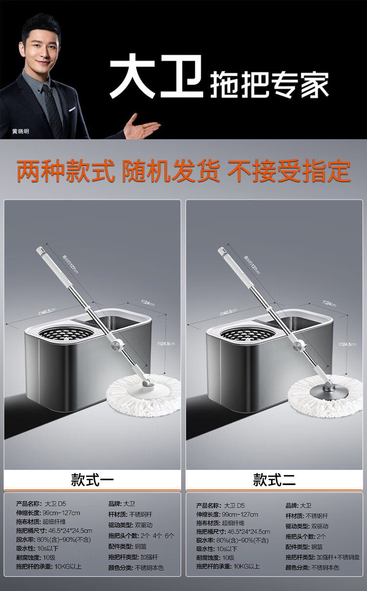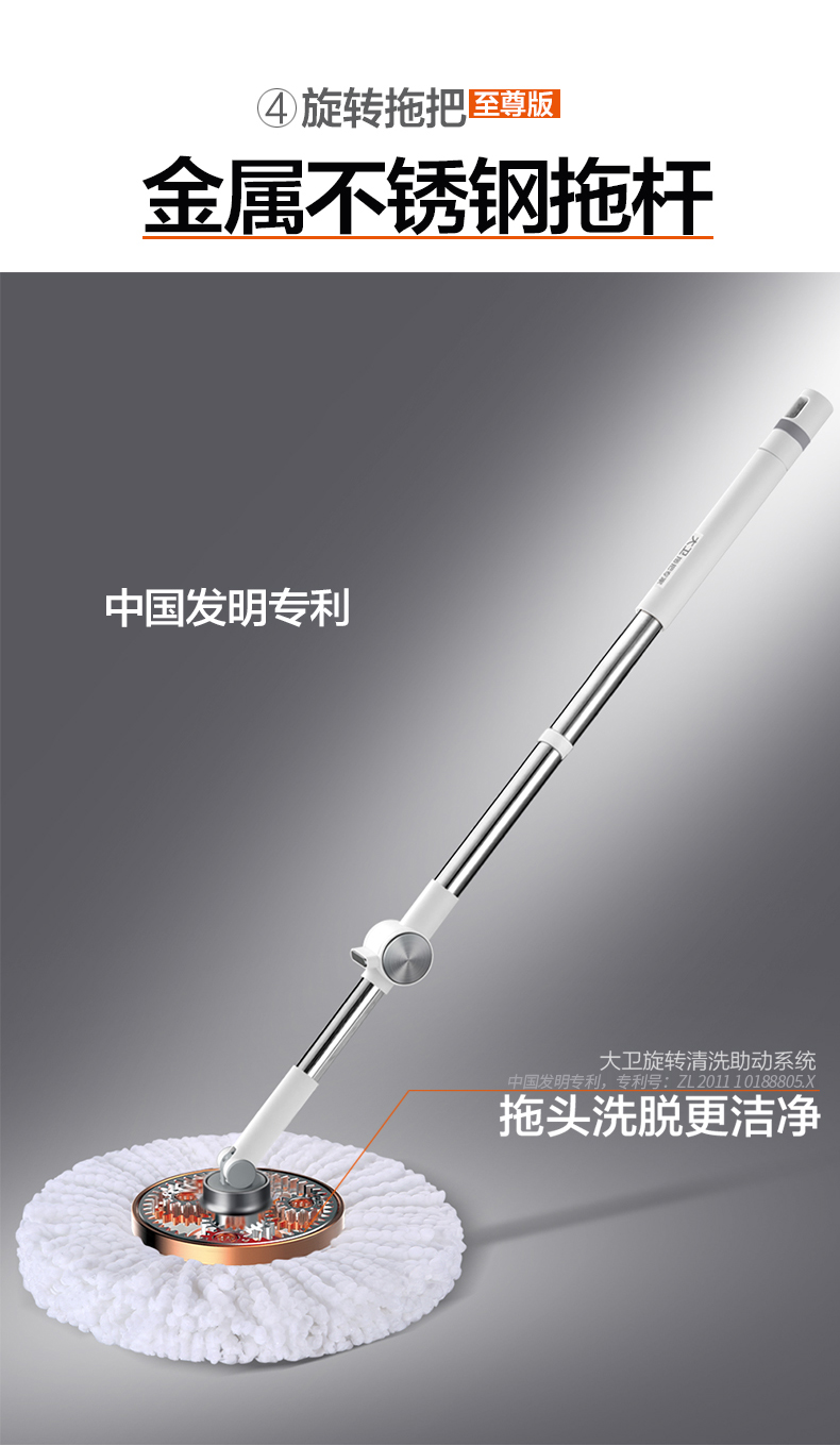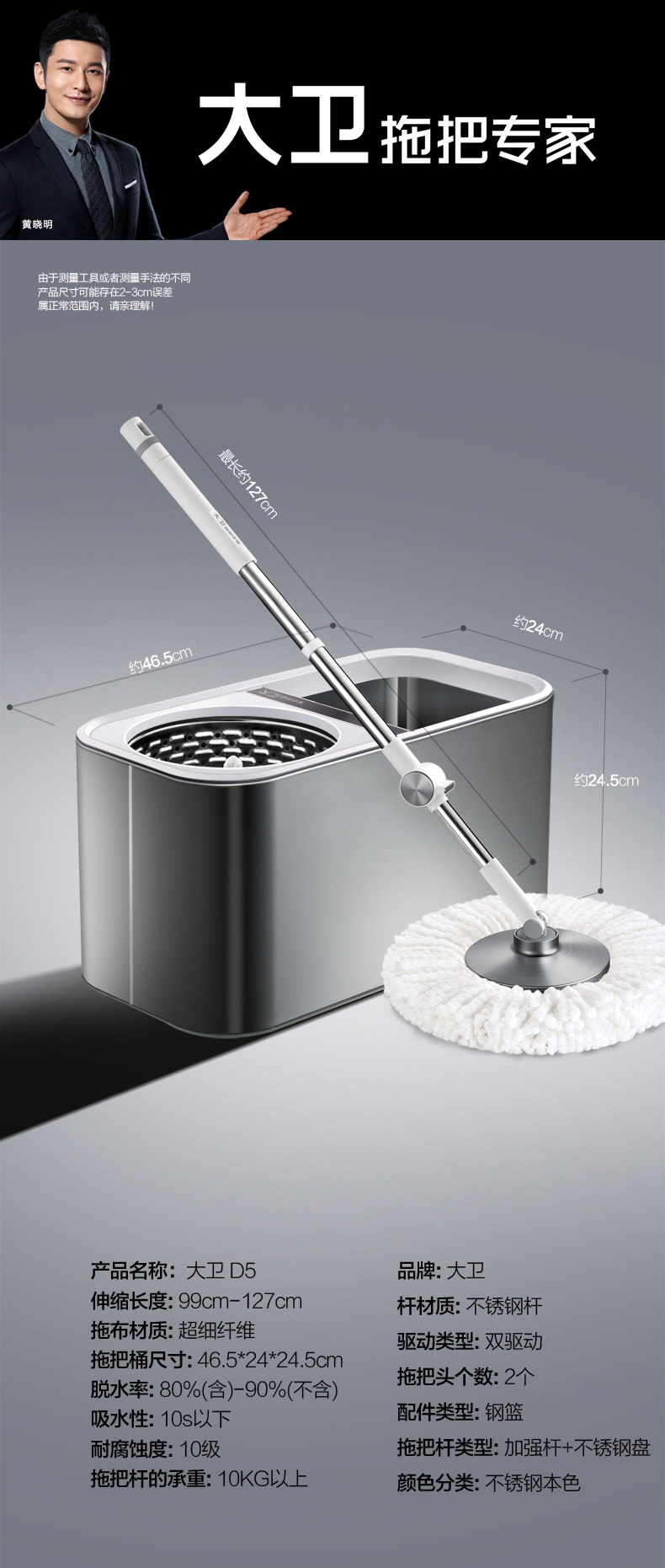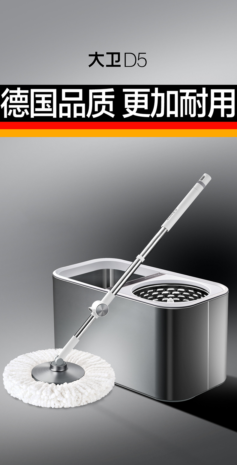 【大卫 拖把专家】D5 拖把不锈钢双驱动免手洗旋转拖把桶甩干地拖墩布