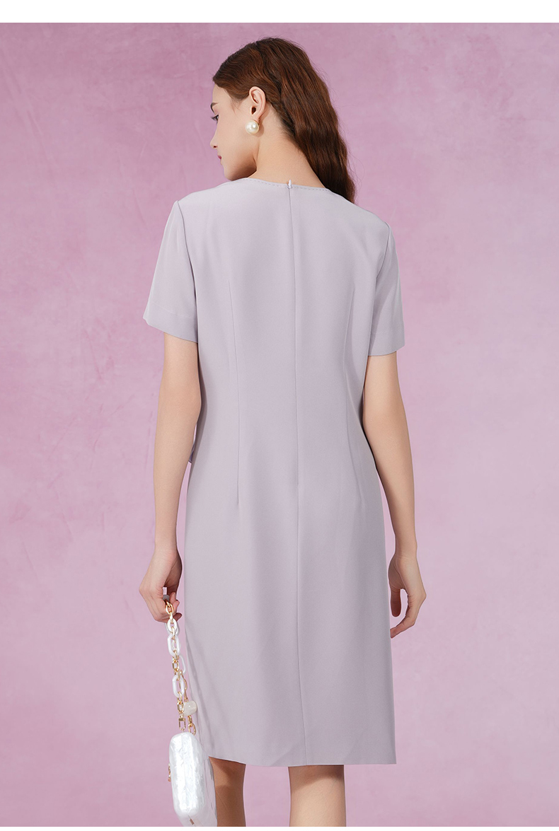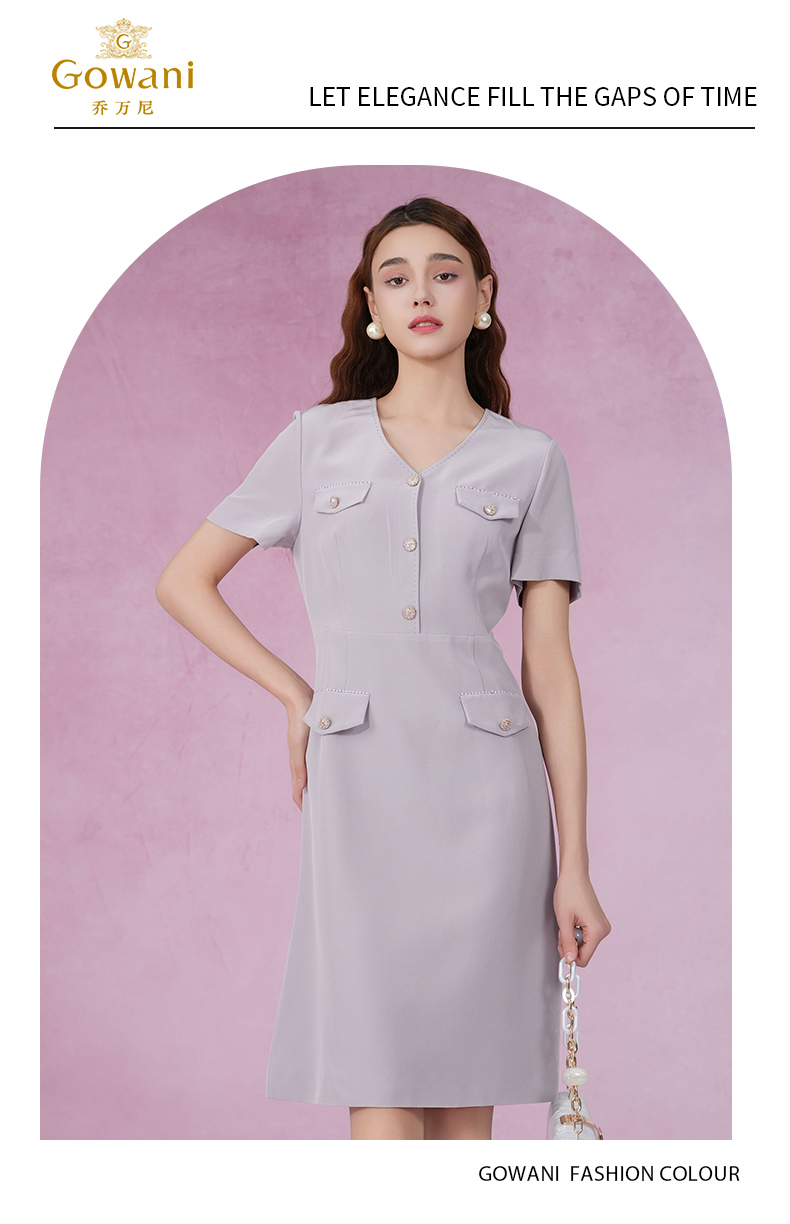 乔万尼V领薰衣草紫小香风连衣裙EM2E745